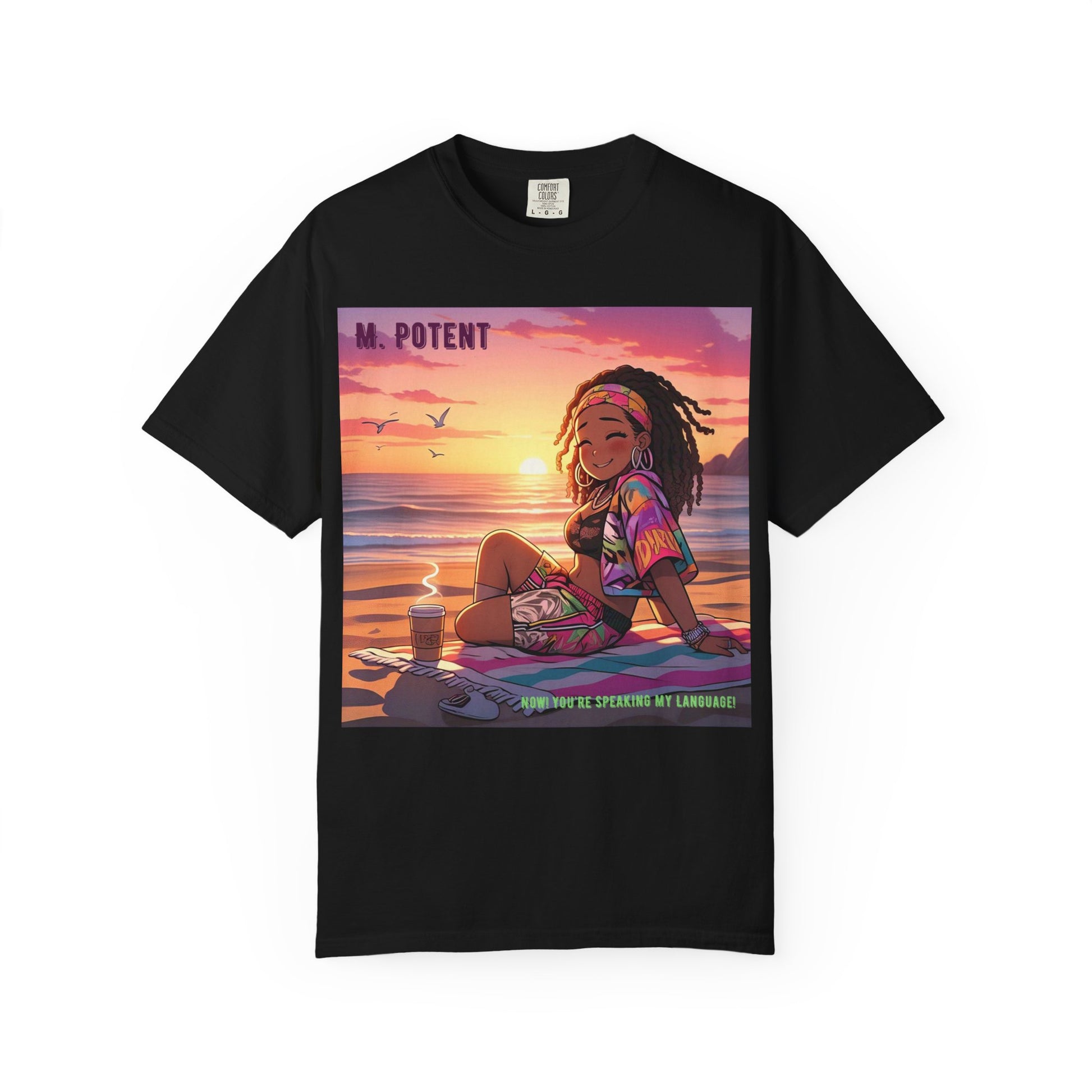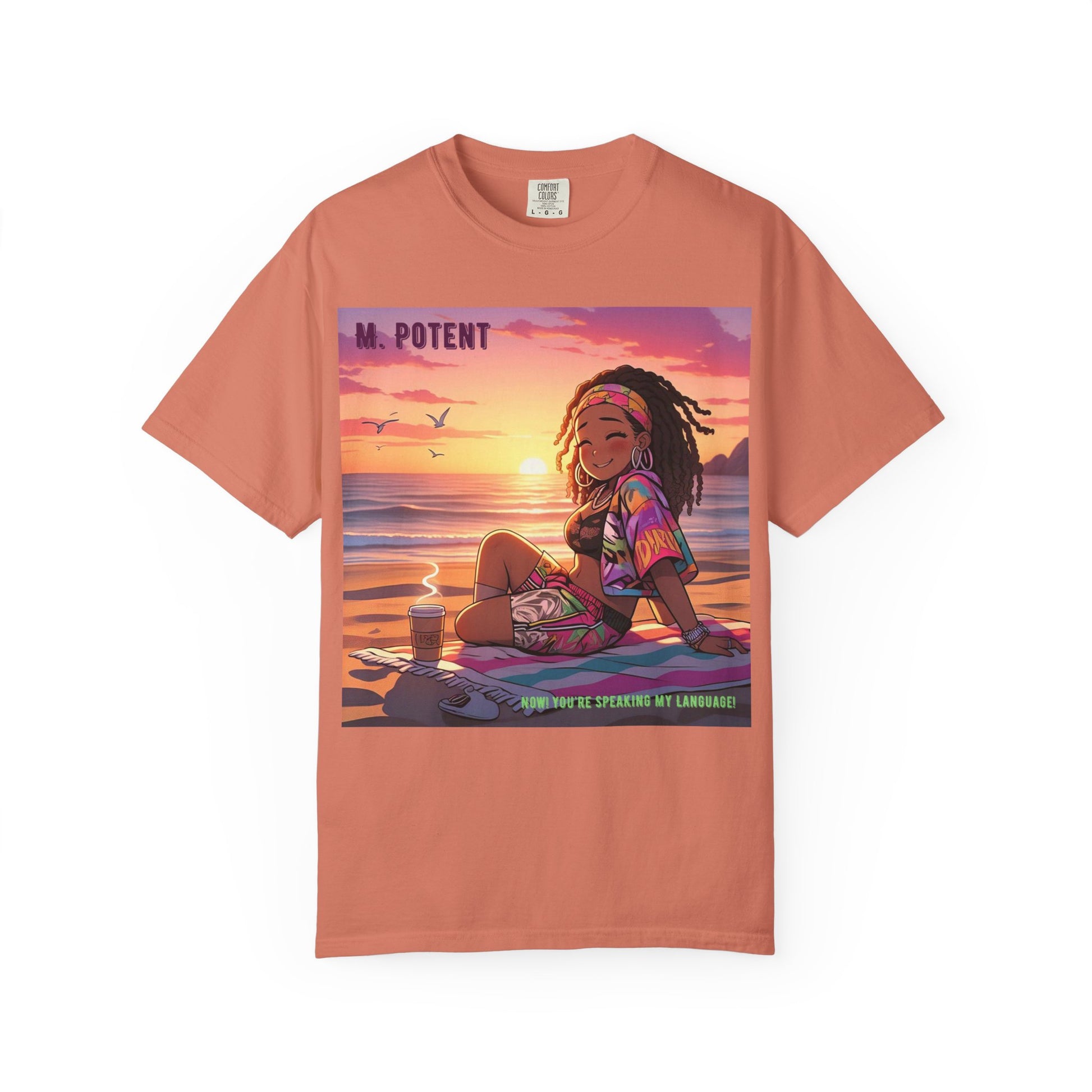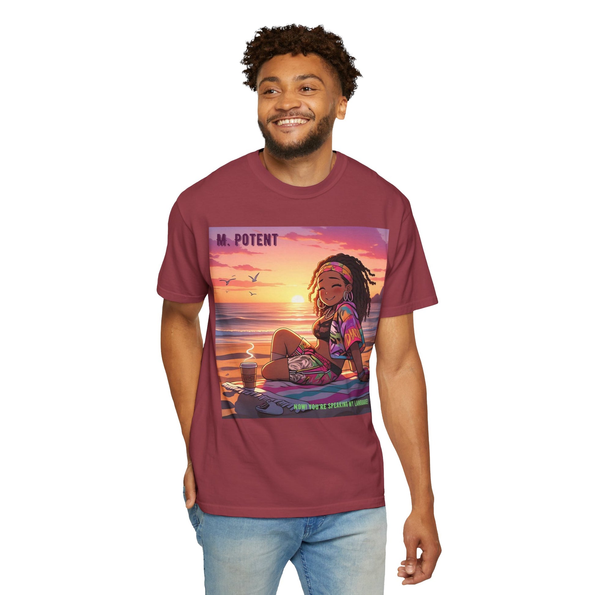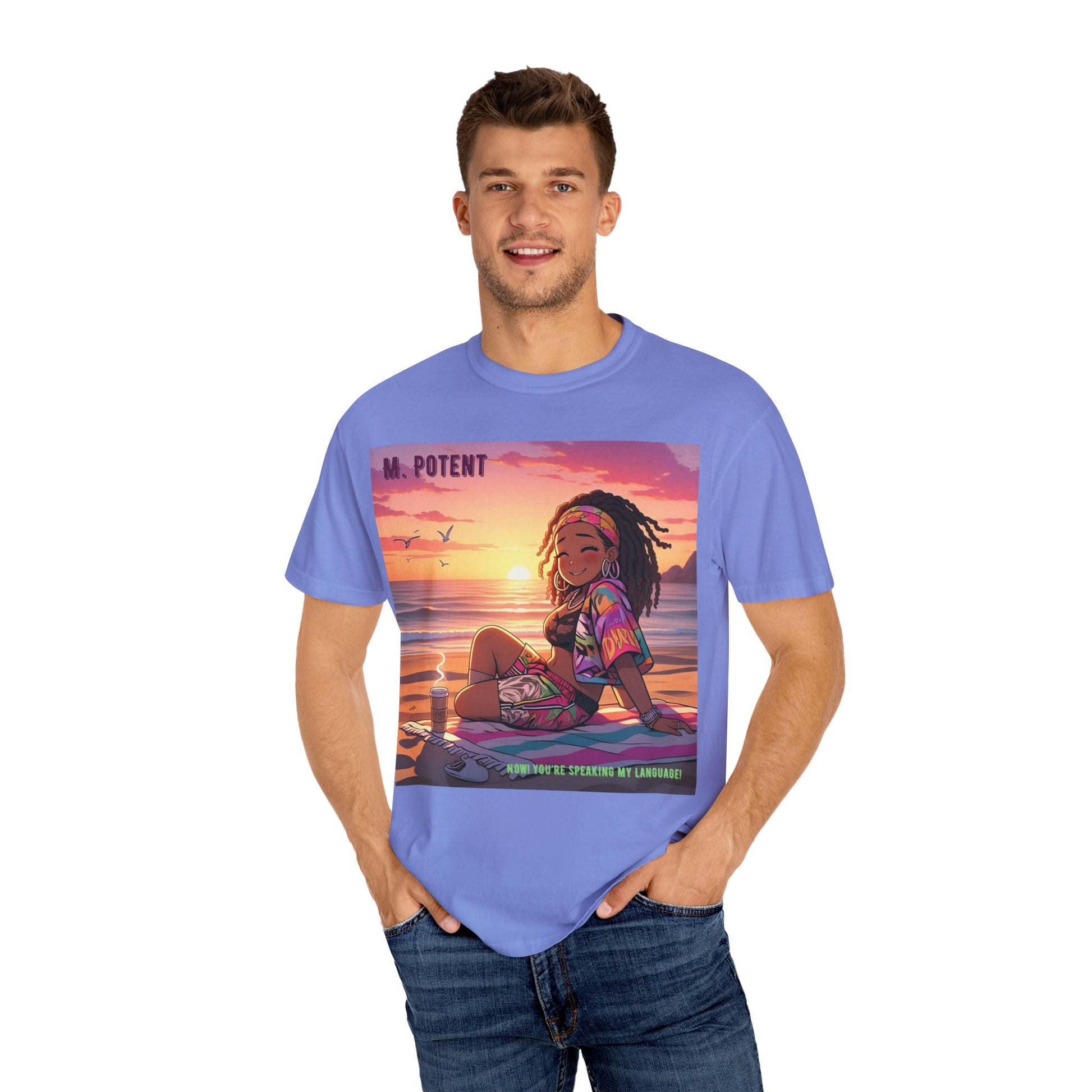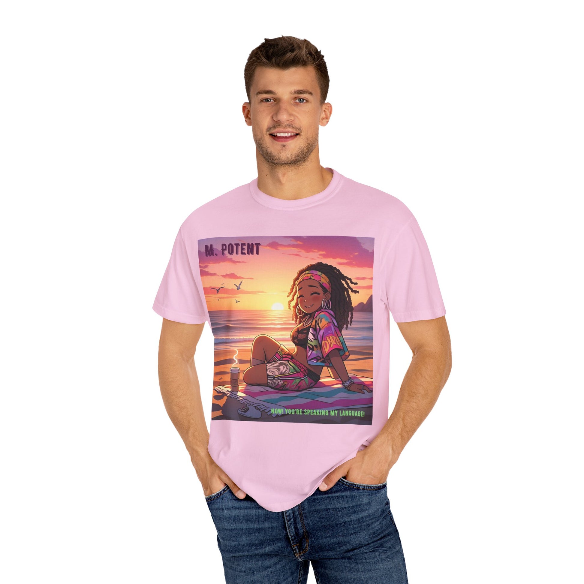 'Now You're Speaking My Language' by M. Potent, Beach Vibes Unisex Garment-Dyed T-shirt, Summer Apparel, Chill T-shirt, Vacation Wear, Perfect Gift for Sun Lovers, Graphic Tee