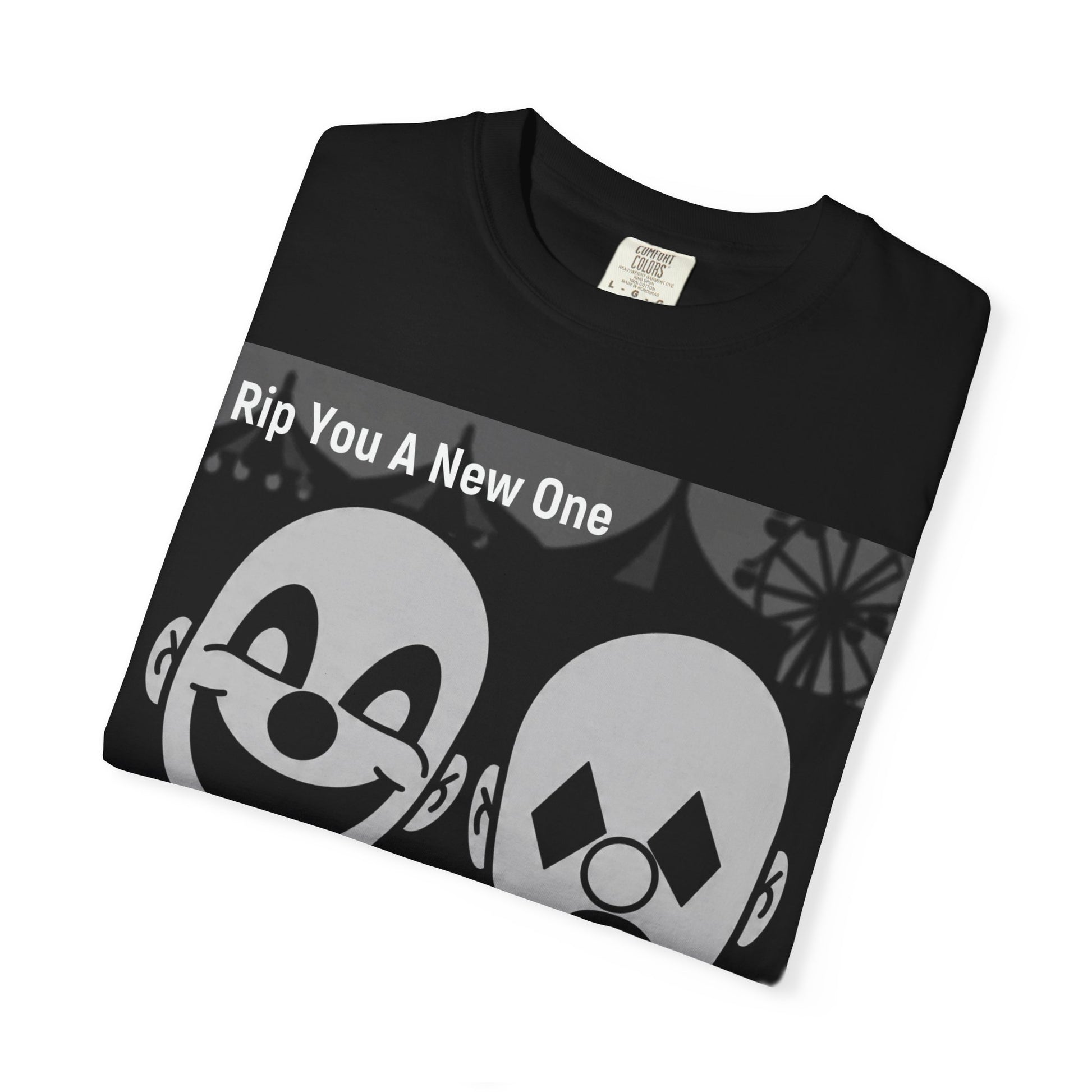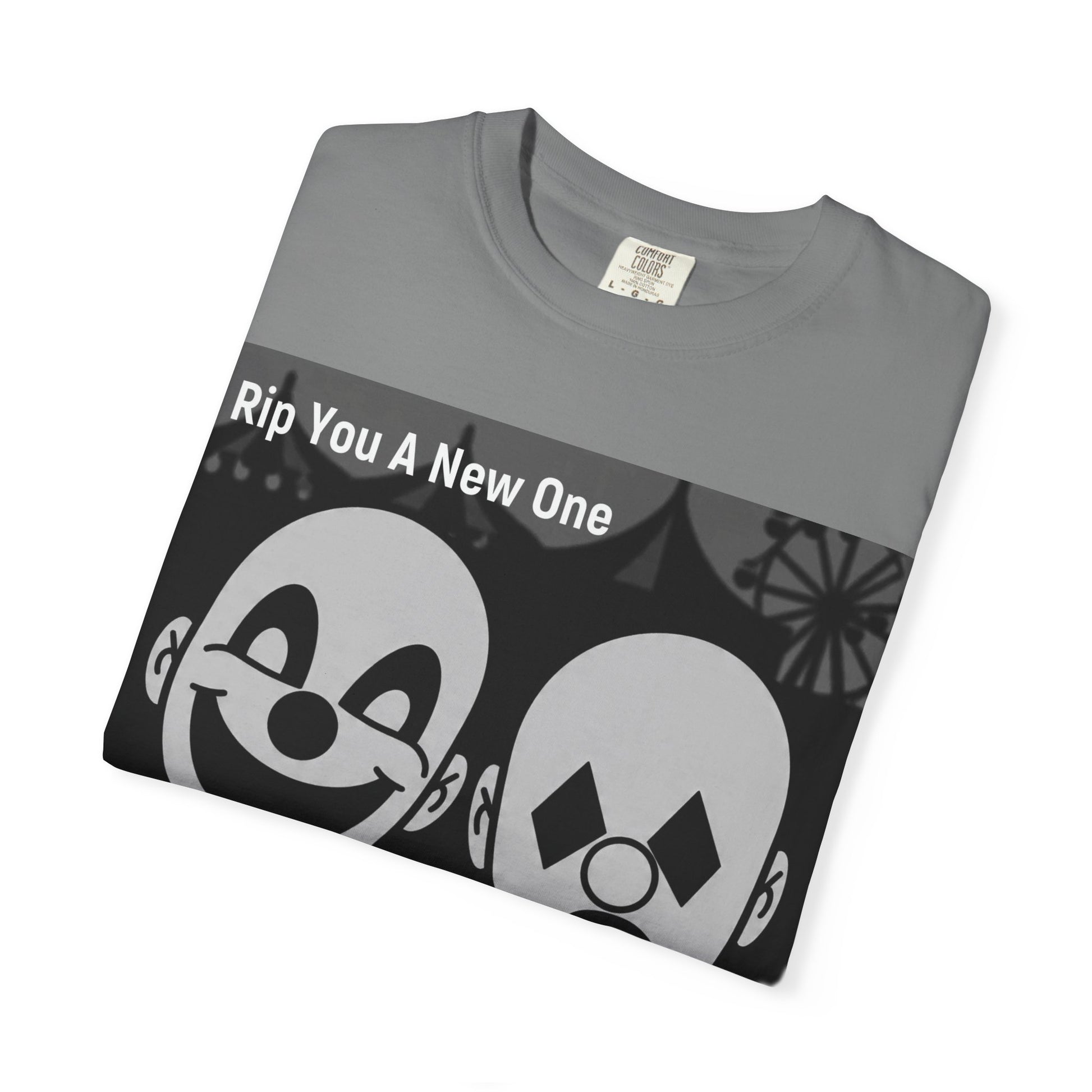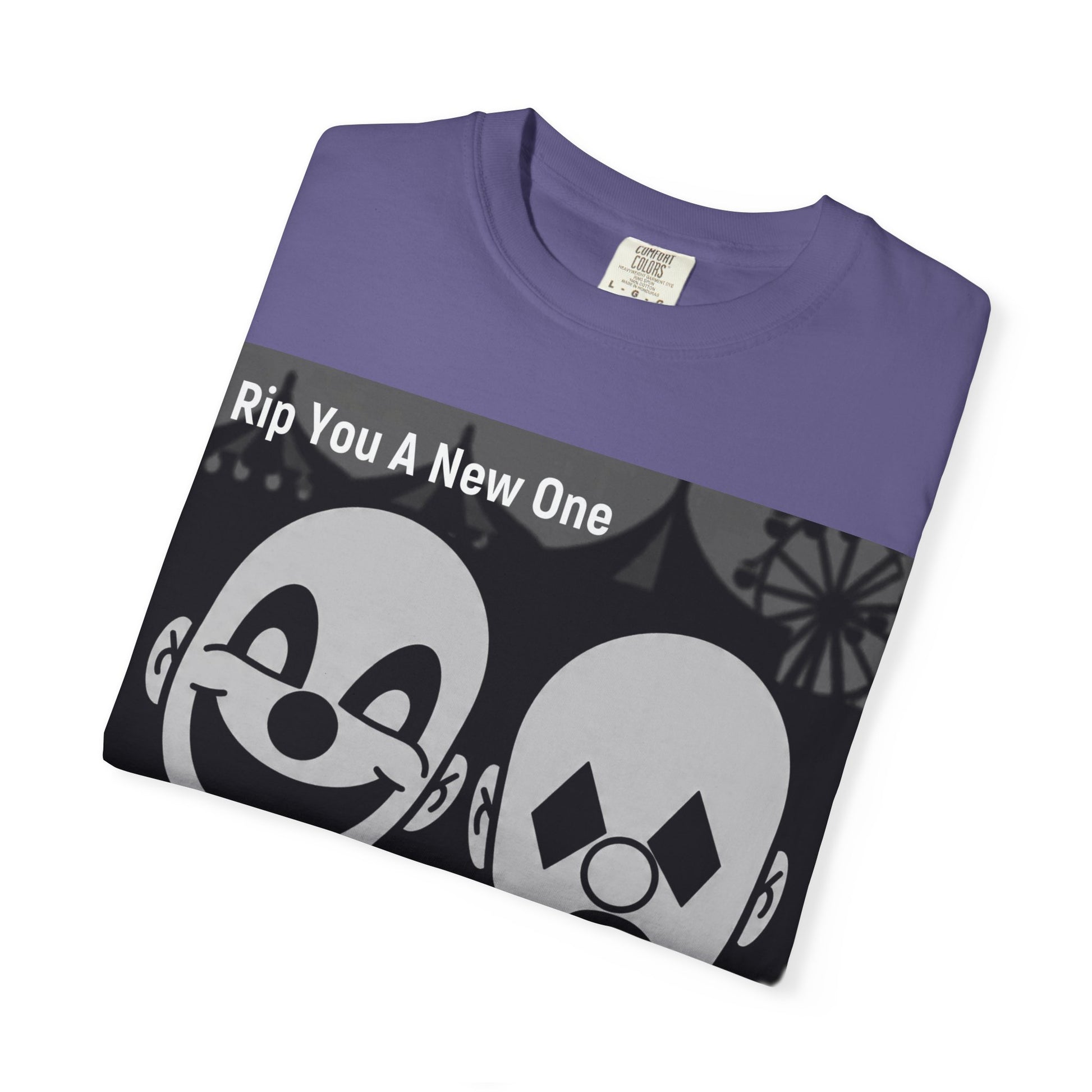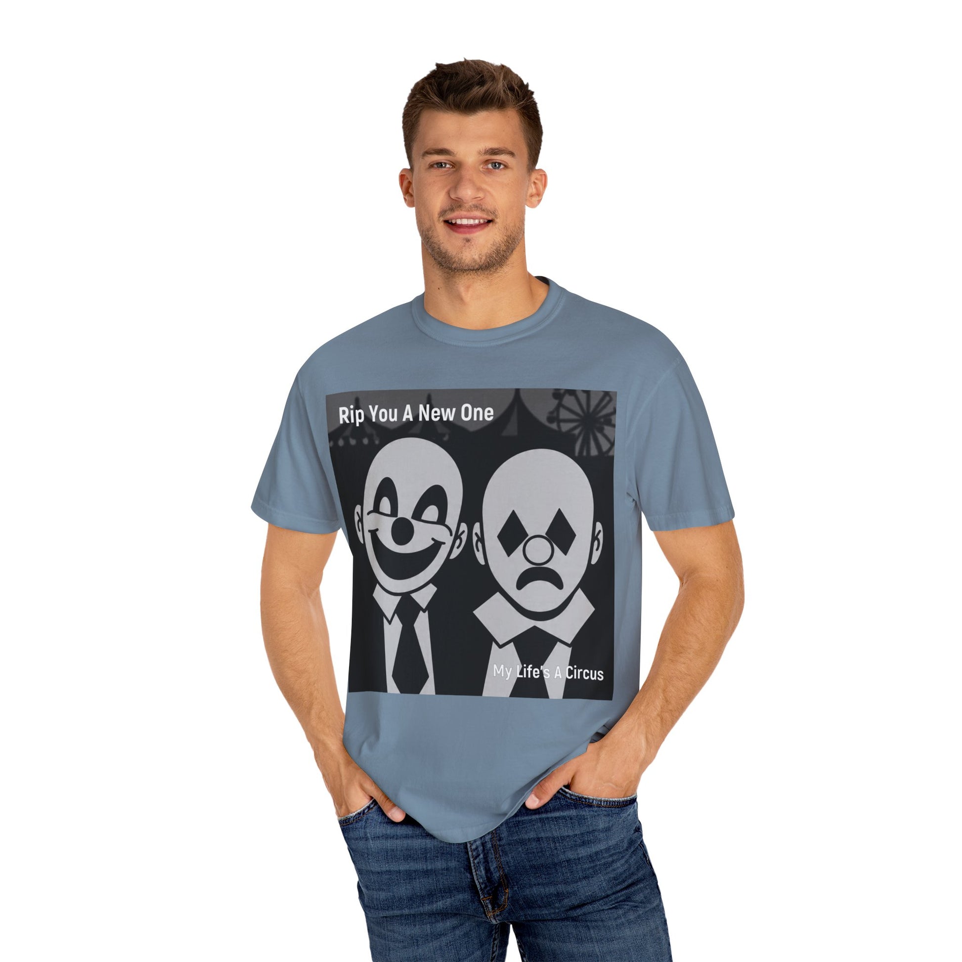 'My Life's A Circus' by Rip You A New One, Clown-Themed Unisex T-Shirt, Quirky Graphic Tee, Funny Gift for Theatre Lovers, Unique Casual Wear, Statement T-shirt, Humor Apparel, Sad and Happy Faces