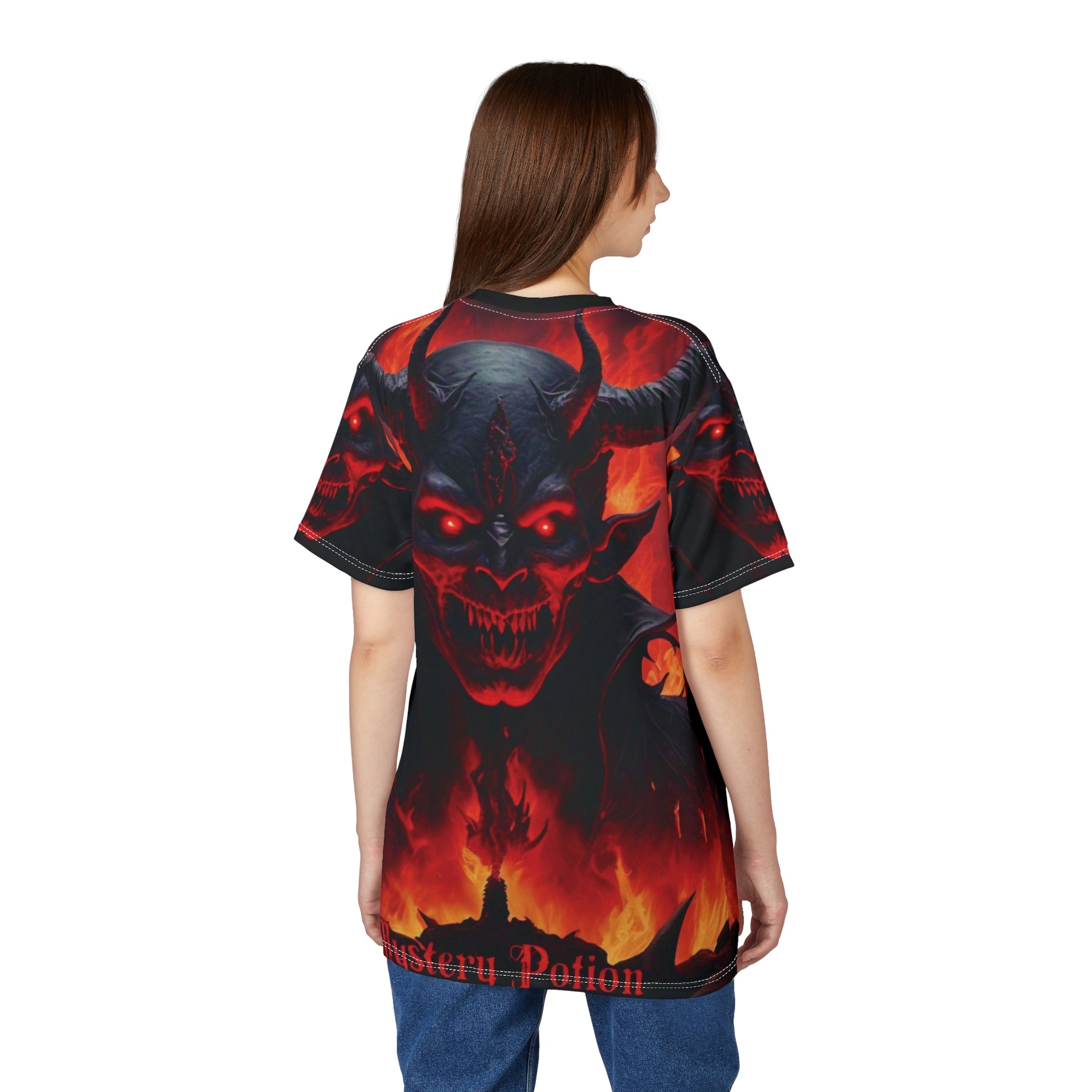 Demon Graphic Tee, Unisex Cut & Sew Shirt, Mystical Apparel, Halloween Costume, Dark Fantasy Clothing, Unique Gift Idea