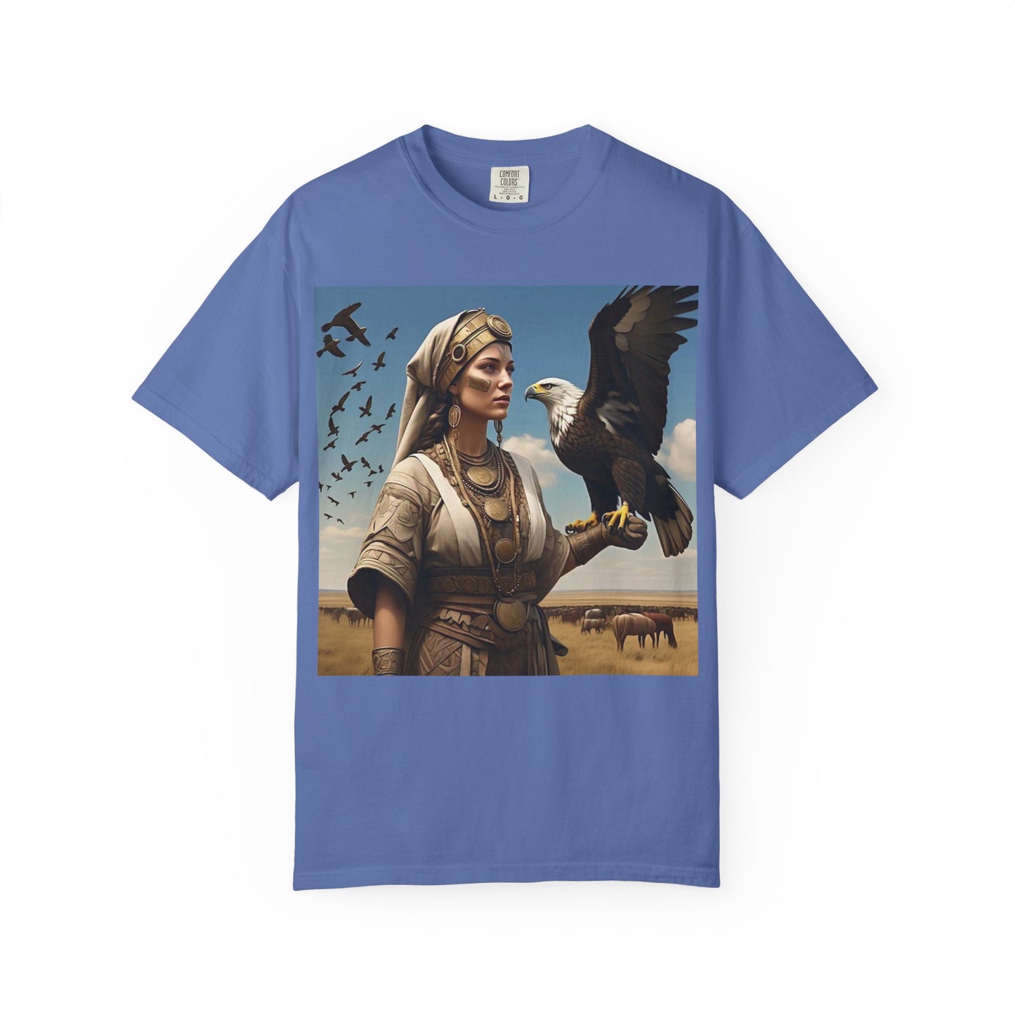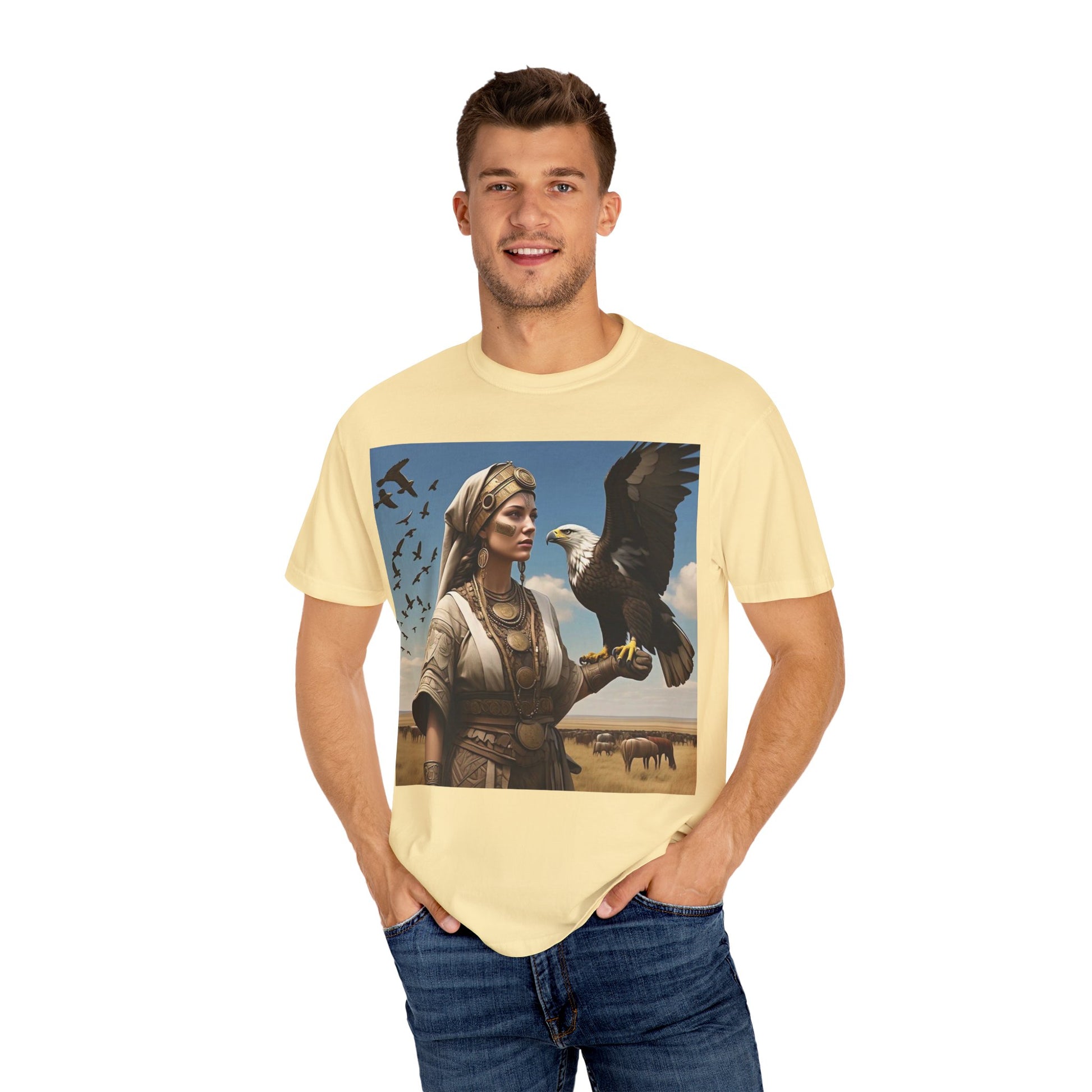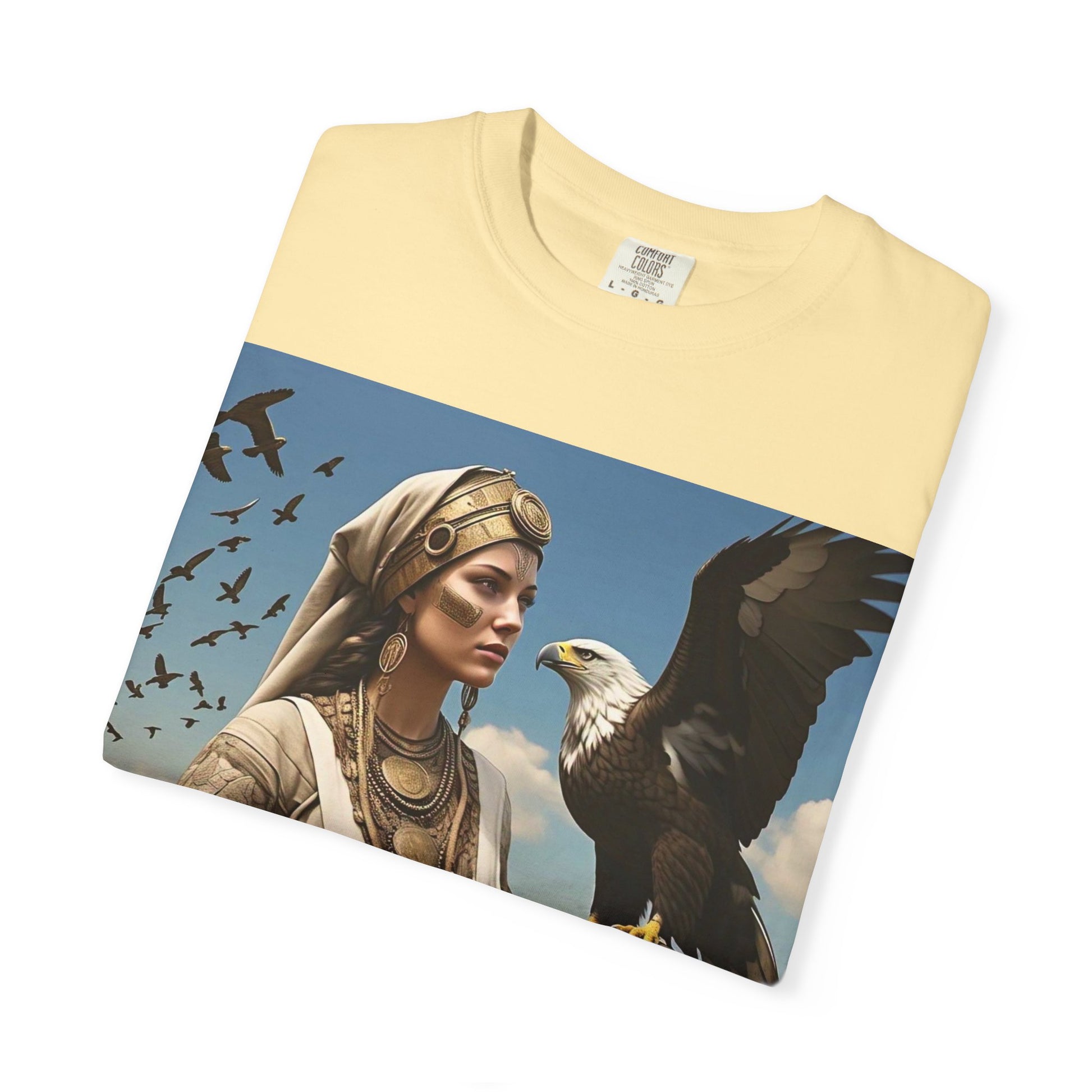 Empowered Eagle and Scythian Woman T-Shirt, Unisex Garment-Dyed Tee, Nature Lover Shirt, Gift for Bird Enthusiasts, Unique Graphic Tee