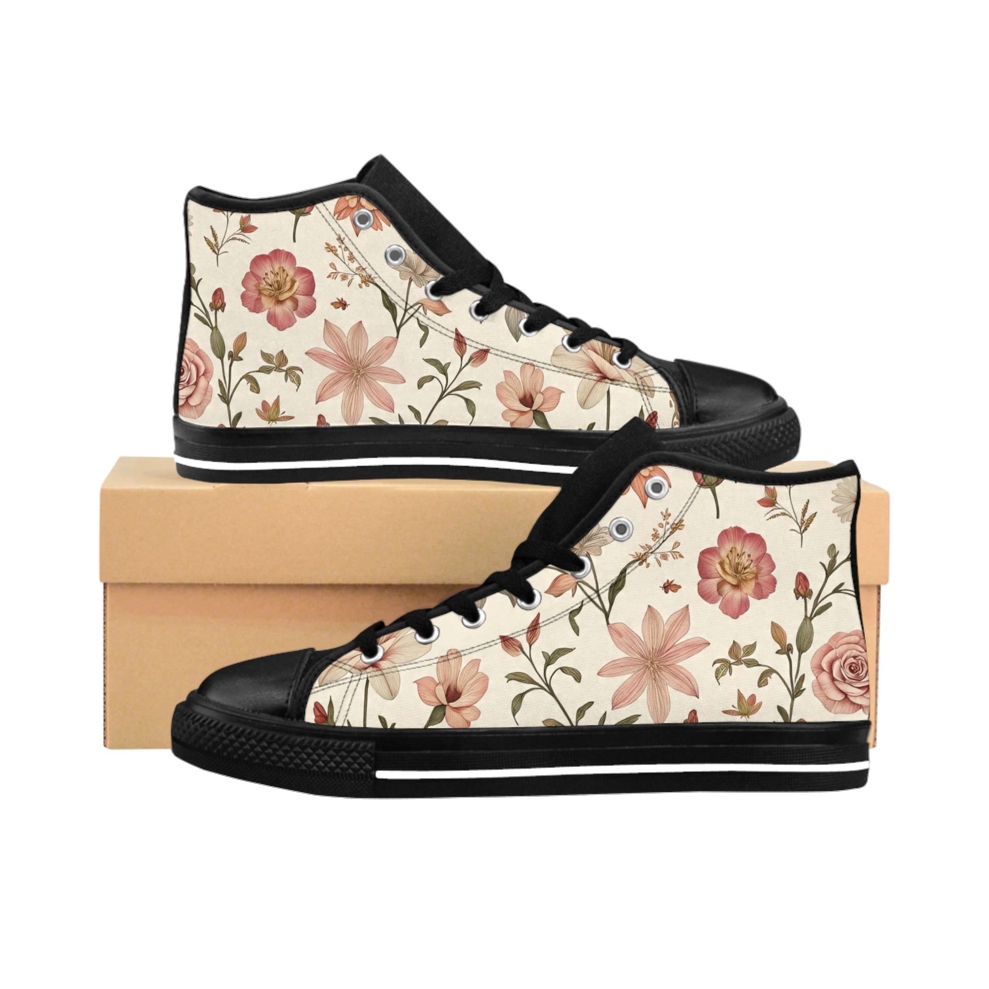 Floral Print High-Top Sneakers, Unique Floral High-Top Shoes, Trendy Casual Sneakers, Gift for Her, Spring Footwear