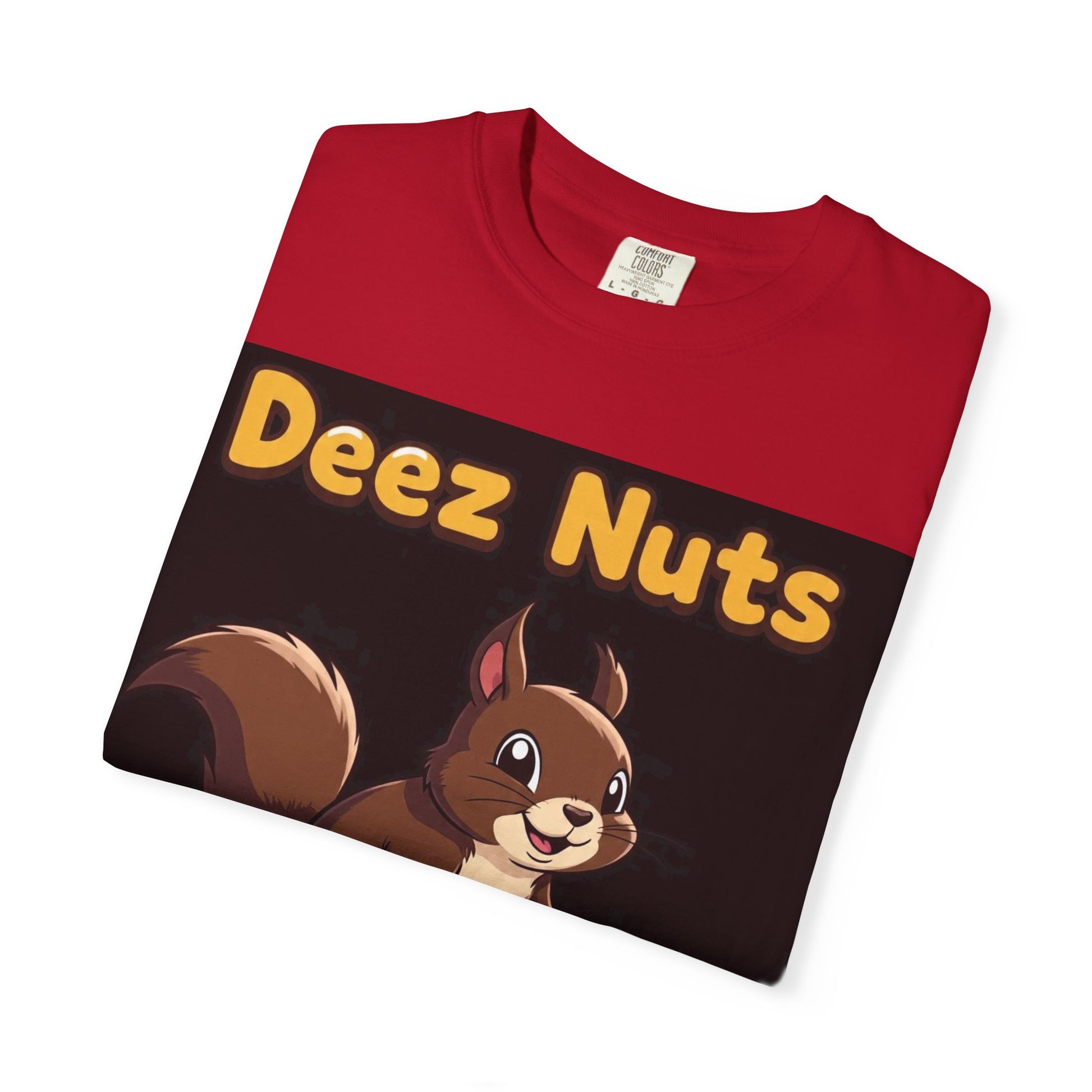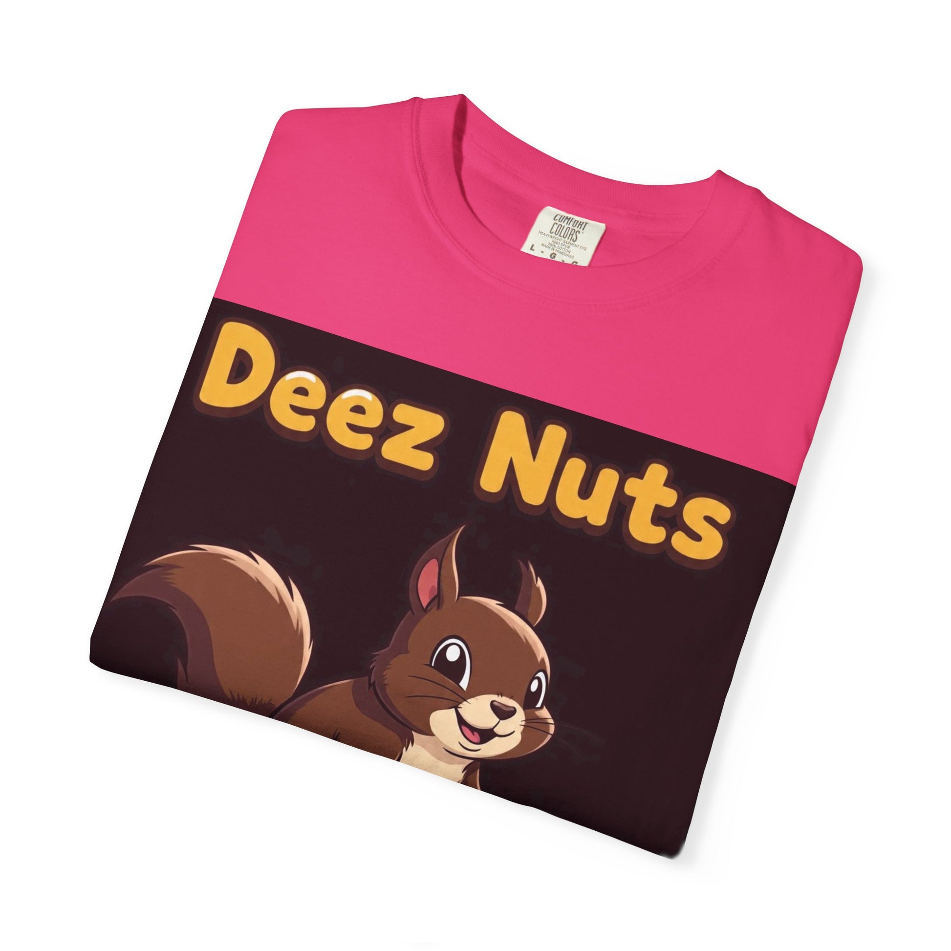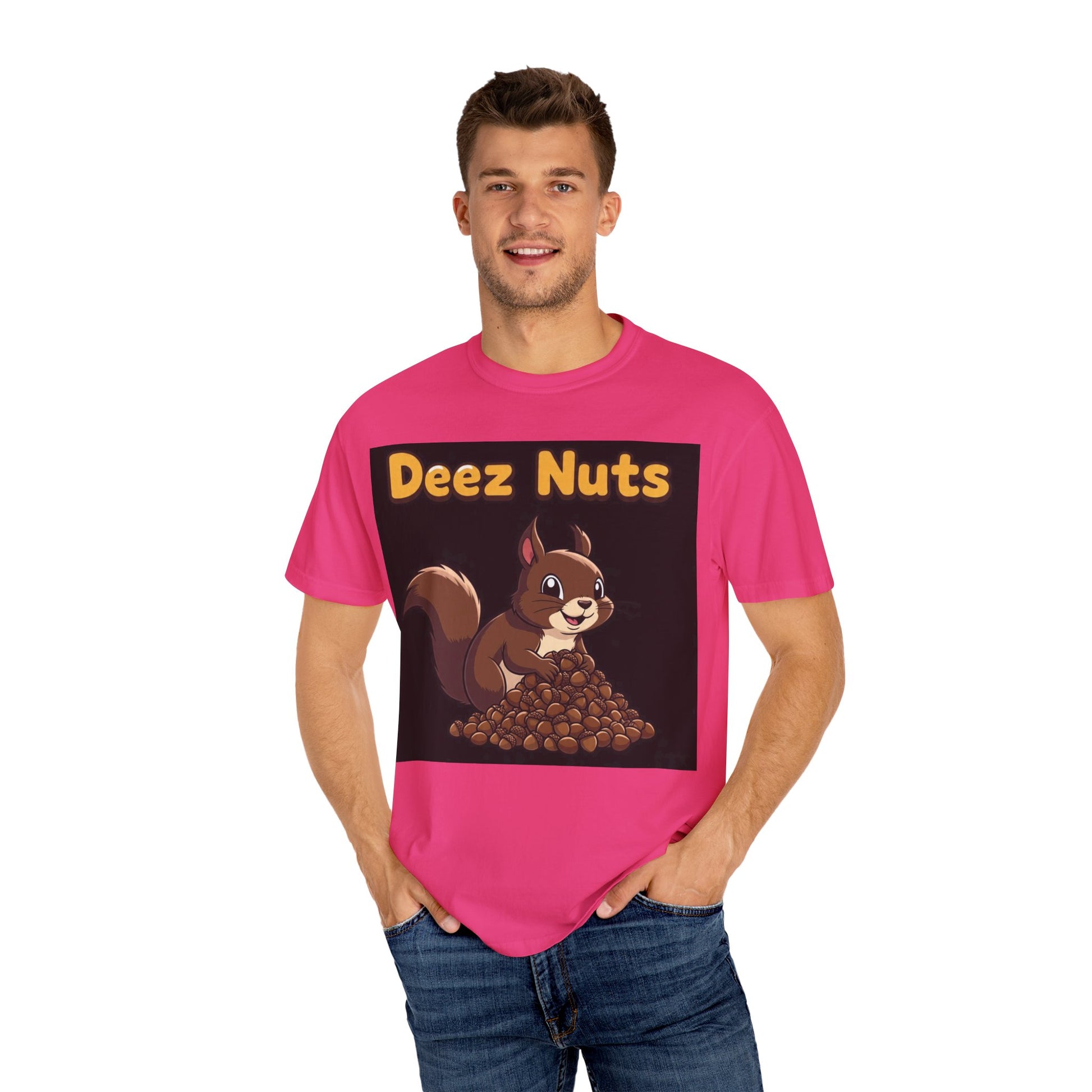 Elevate your casual wardrobe with this comfortable Unisex Garment-Dyed T-shirt, perfect for those who appreciate playful designs and soft textures. The amusing 'Deez Nuts' graphic adds a humorous touch, making it an instant conversation starter. Ideal for relaxed gatherings, comic conventions, or just lounging at home. Its relaxed fit and classic crew neckline make it versatile enough for both casual and semi-formal settings. Perfect for gifting during holidays, fun celebrations, or special occasions, this T-shirt caters to anyone looking to express their quirky side. With a wide range of sizes and colors, it’s a go-to choice for all ages!