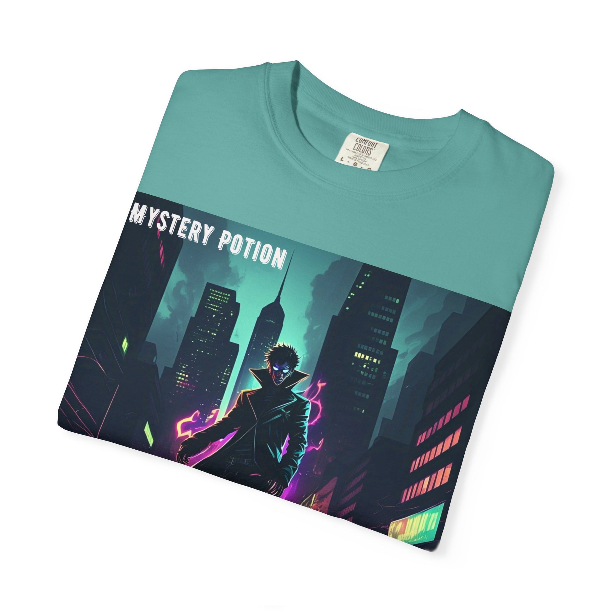 This T-shirt features a unique design inspired by a blend of Metal, Punk, and Electronicore music with influences from Reggae, Latin, and Traditional folk. It is perfect for music enthusiasts and fans of Mystery Potion. The garment-dyed fabric adds a soft color and texture, making it comfortable for casual wear. Ideal for adults and perfect for music-themed occasions and everyday wear.