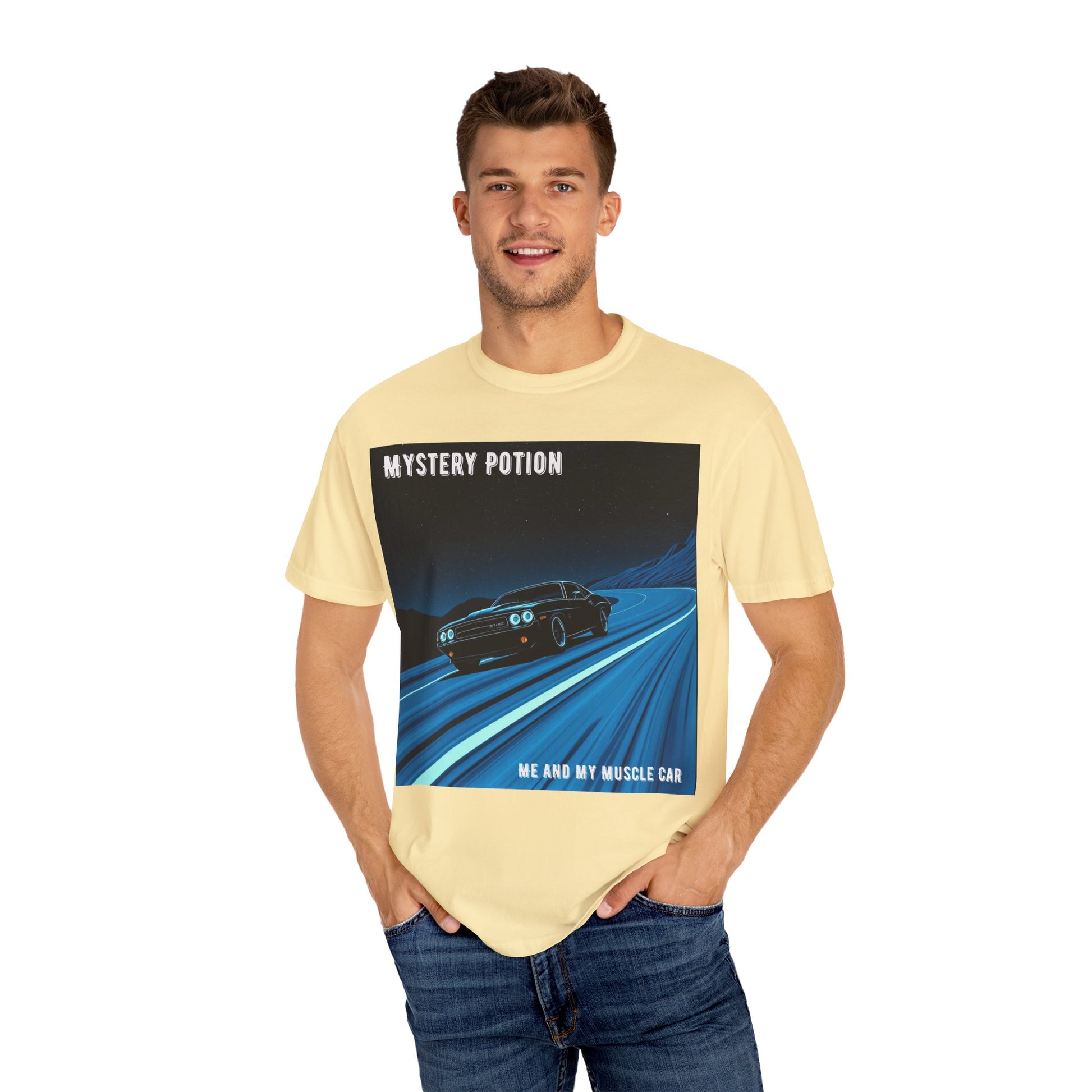 Mystery Potion Muscle Car T-Shirt | Unisex Garment-Dyed Tee, Vintage Car Lover Gift, Perfect for Car Shows, Birthday Gift, Casual Wear