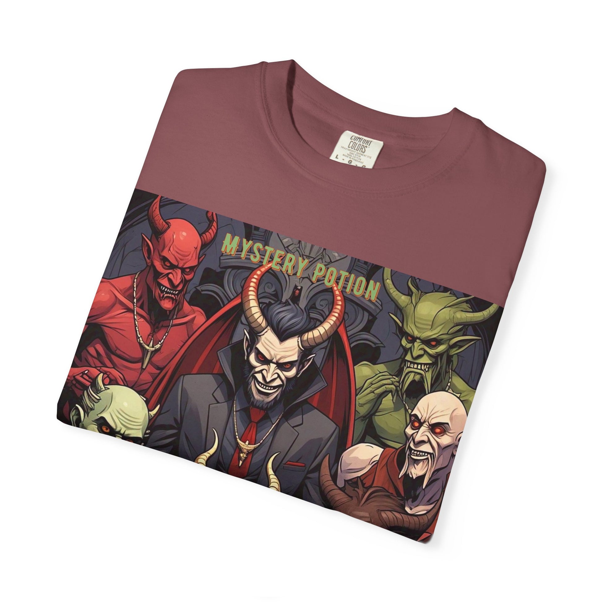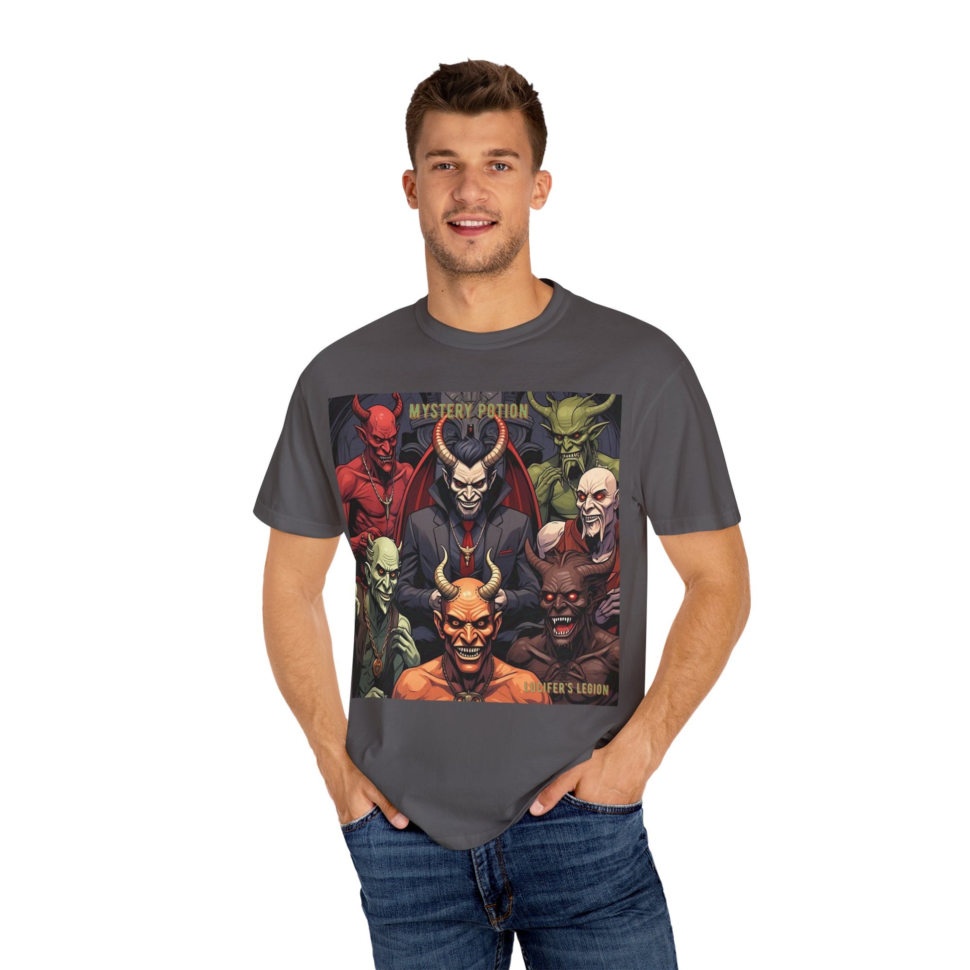 'Lucifer's Legion' by Mystery Potion, Unisex T-Shirt, Devil-Inspired Tee, Halloween Shirt, Comic Book Merch, Gift for Fans