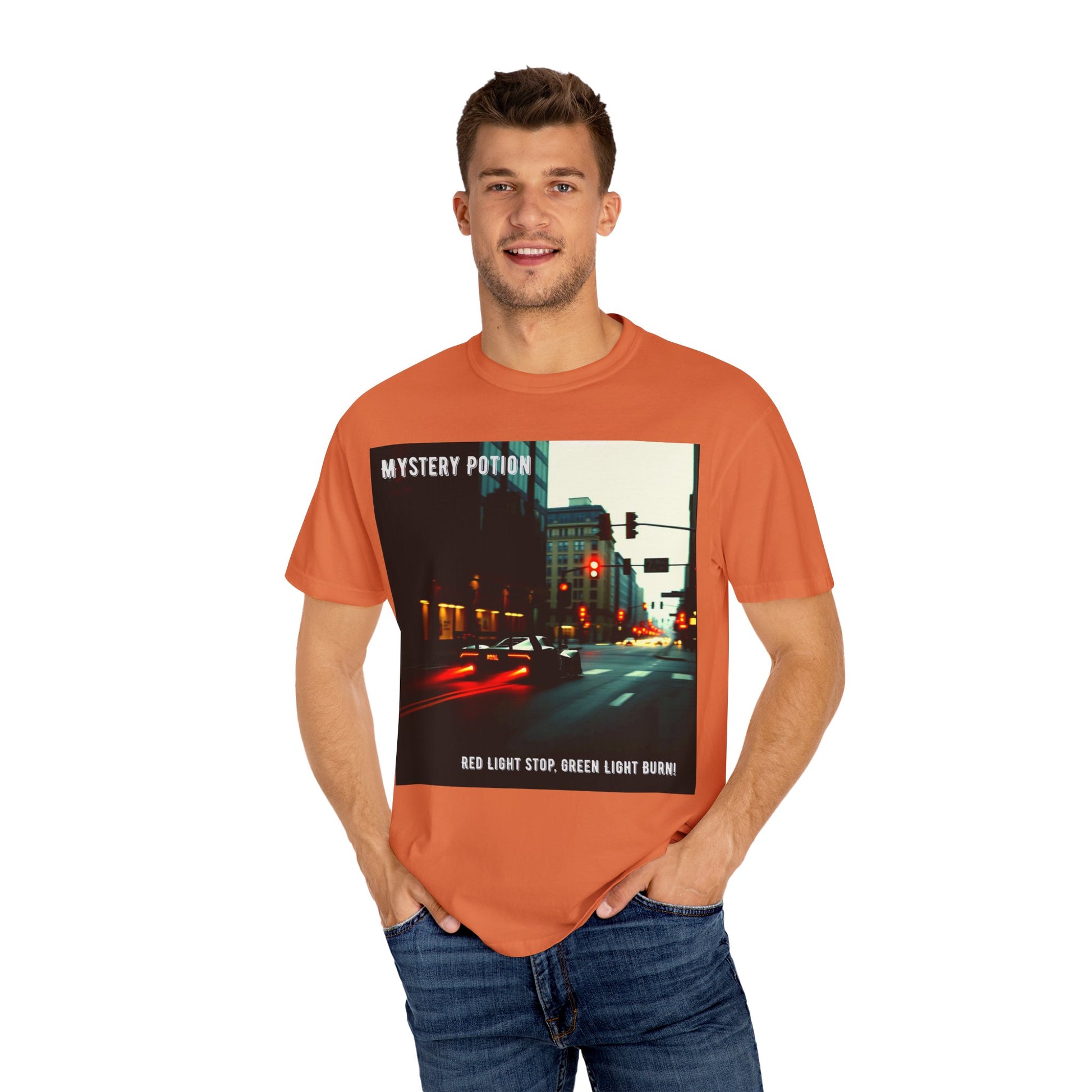 'Red Light Stop, Green Light Burn' by Mystery Potion Urban Vibe T-Shirt, Street Art T-Shirt, Fashion Tee, Gift for Art Lovers, Unisex Cotton Shirt, Unique Graphic Tee