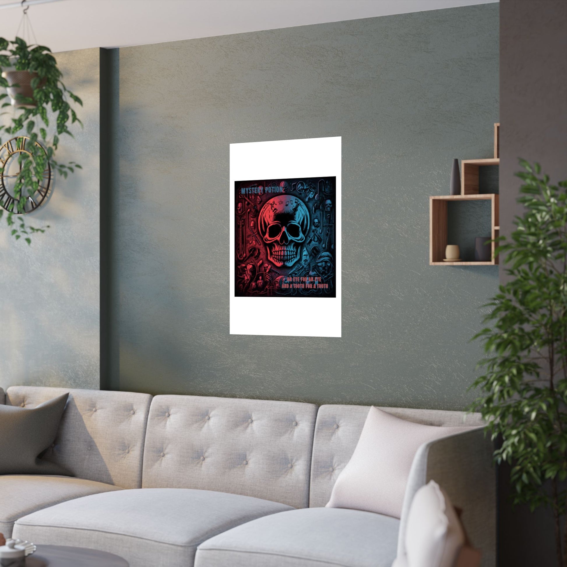 Mystical Skull Satin Poster, Edgy Art Print, Gothic Wall Decor, Unique Gift for Halloween, Dark Academia Aesthetic