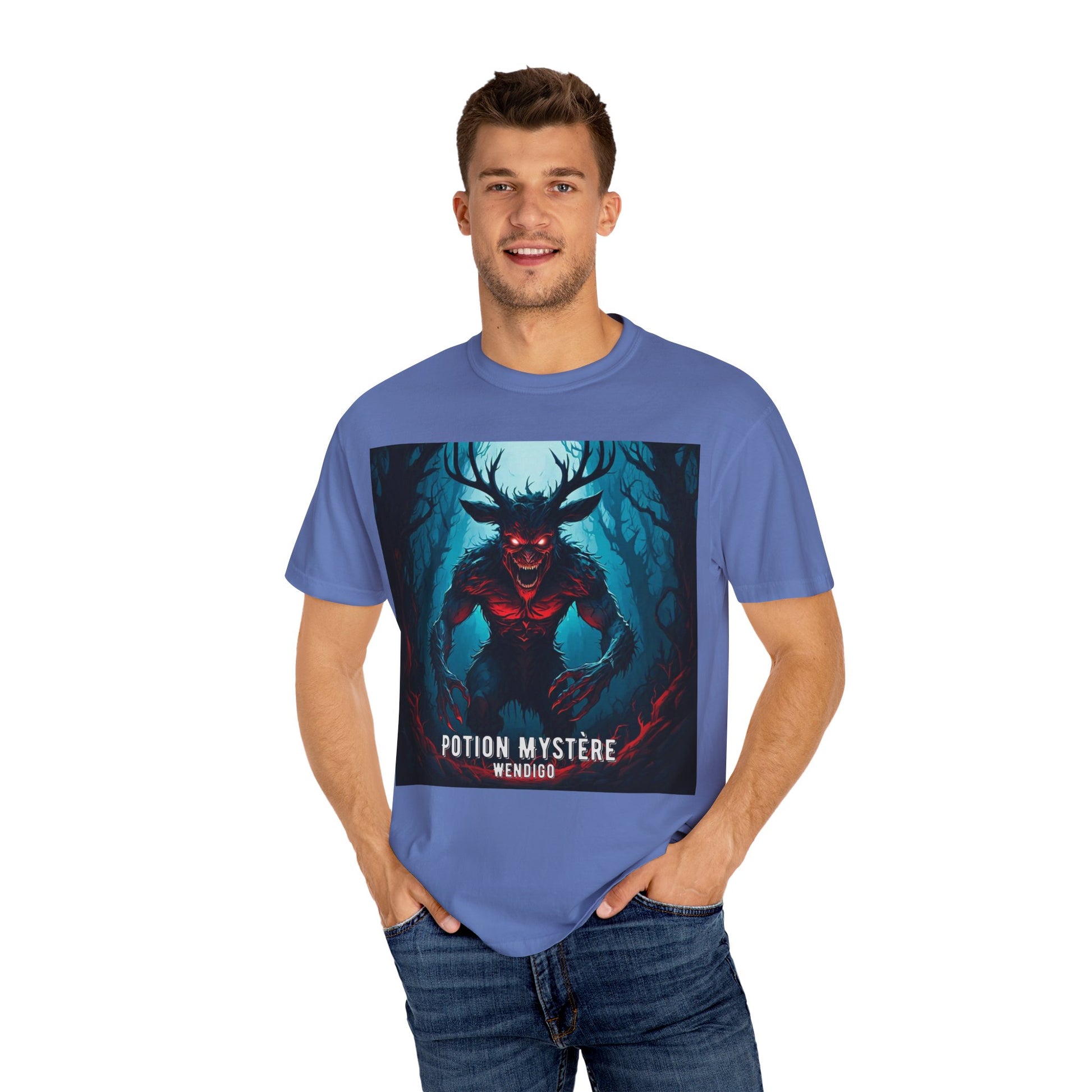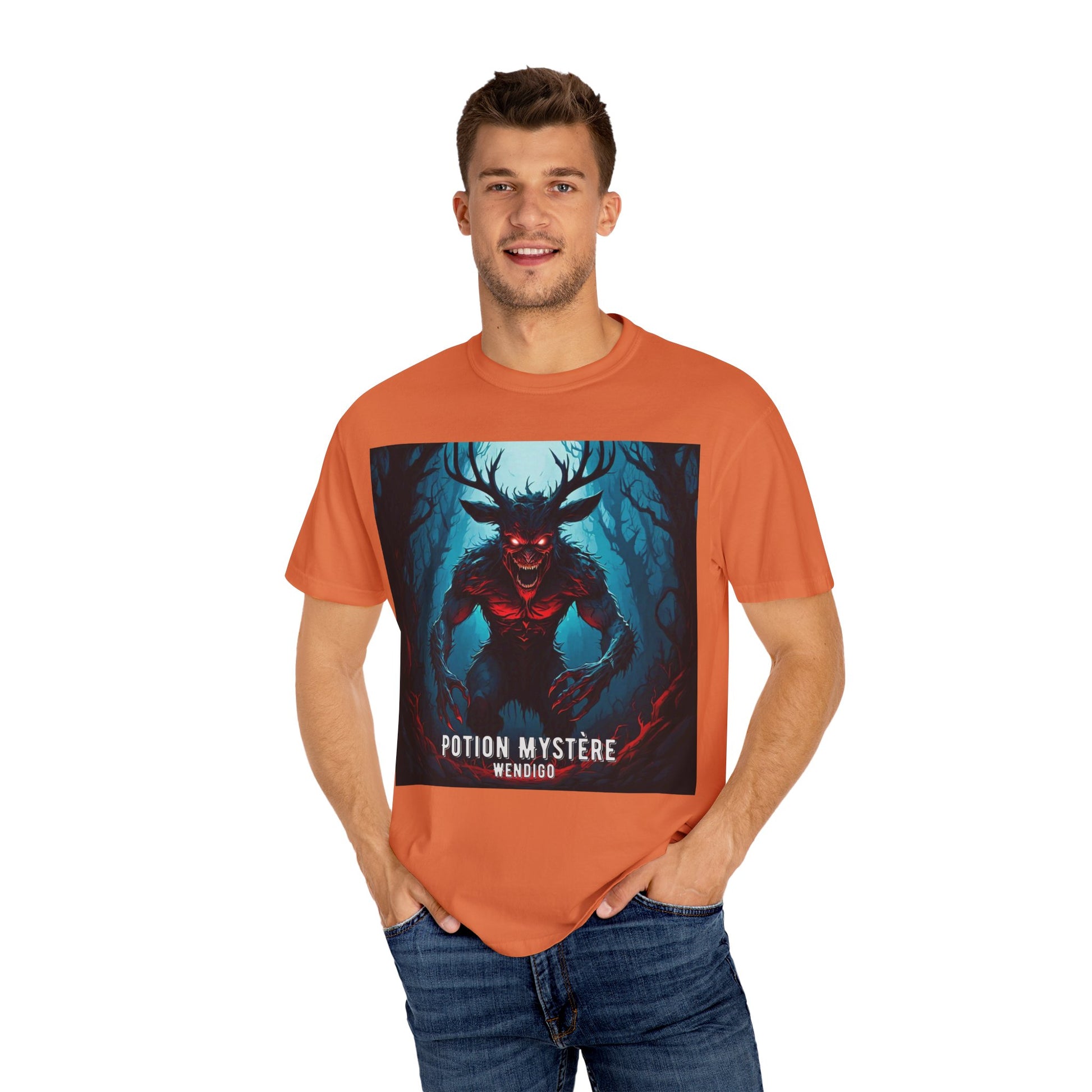 Mystical Wendigo T-Shirt, Unisex Garment-Dyed Tee, Potion Mystère Shirt, Halloween Apparel, Unique Graphic Tee