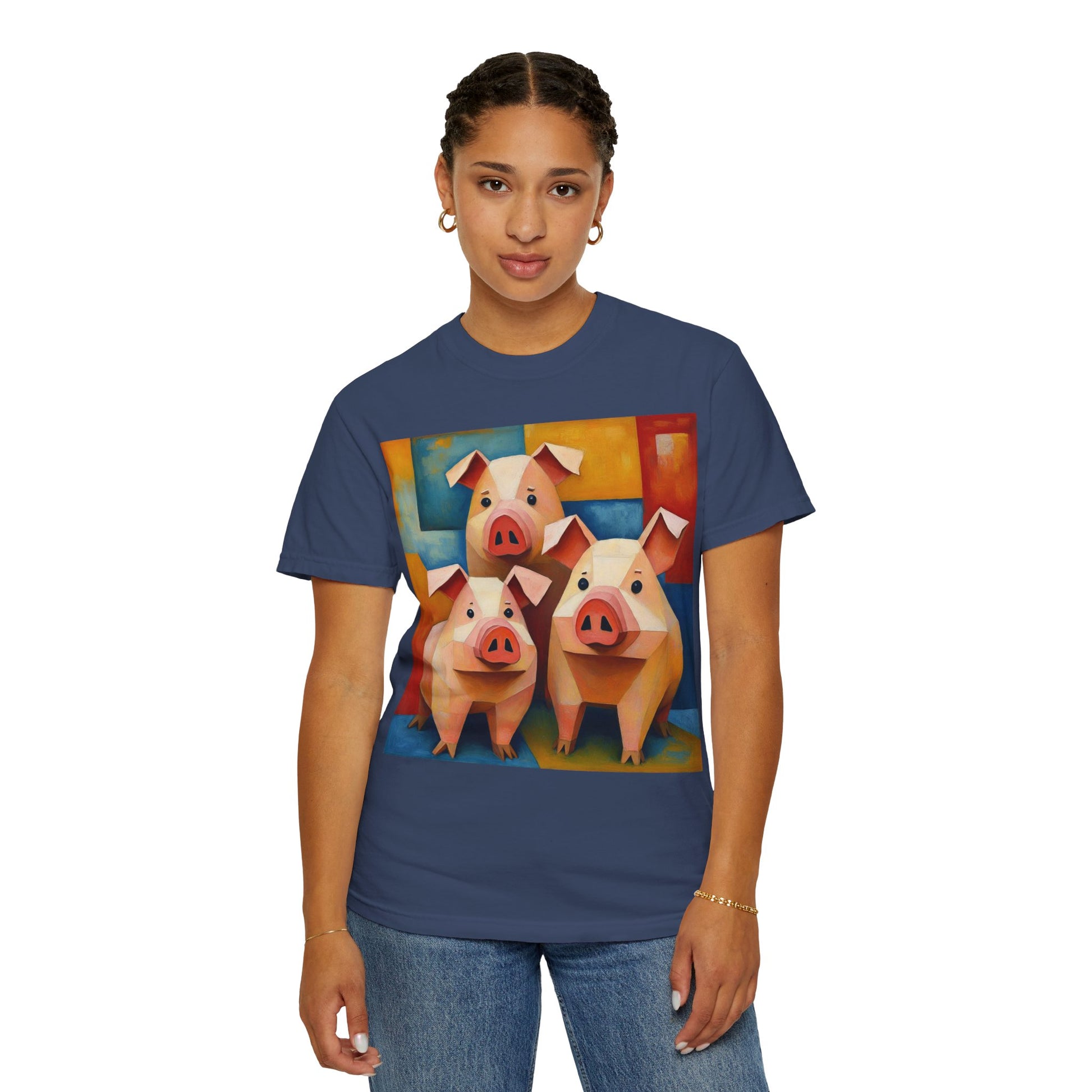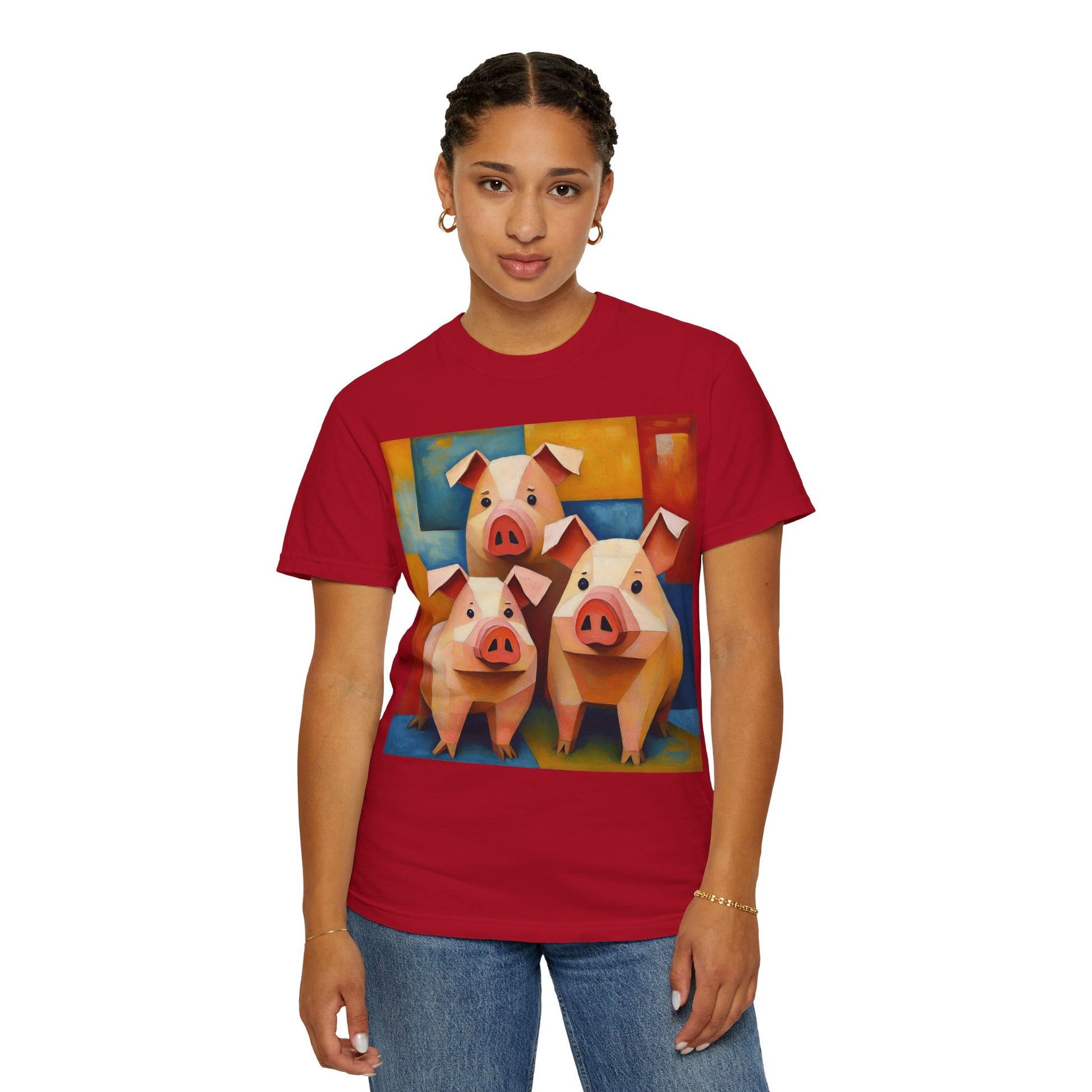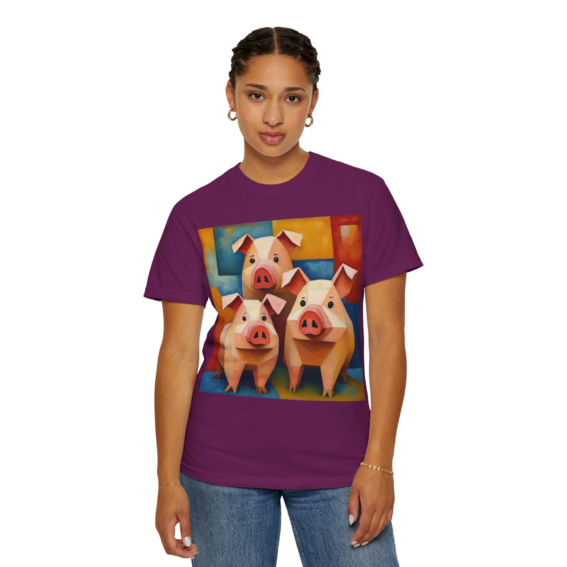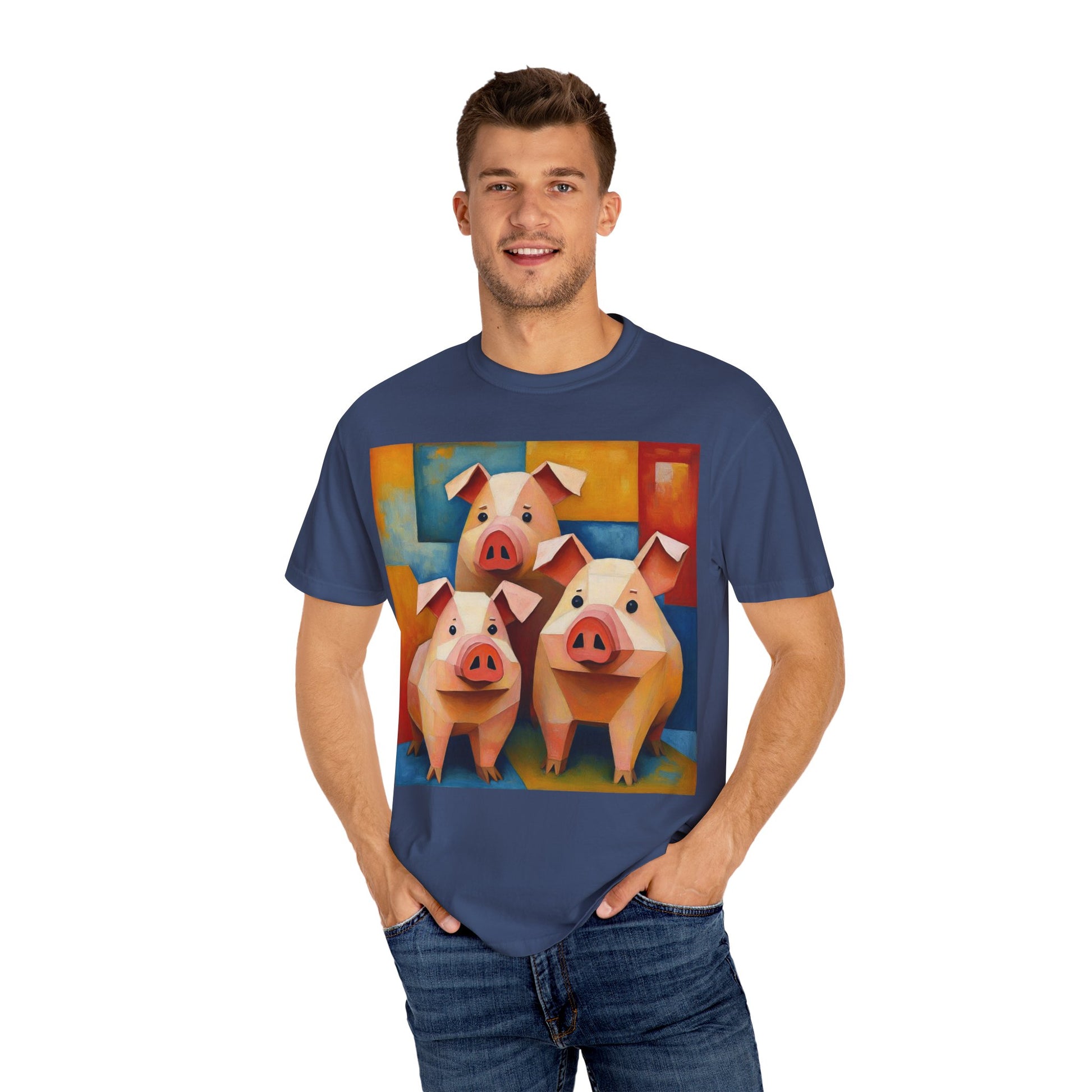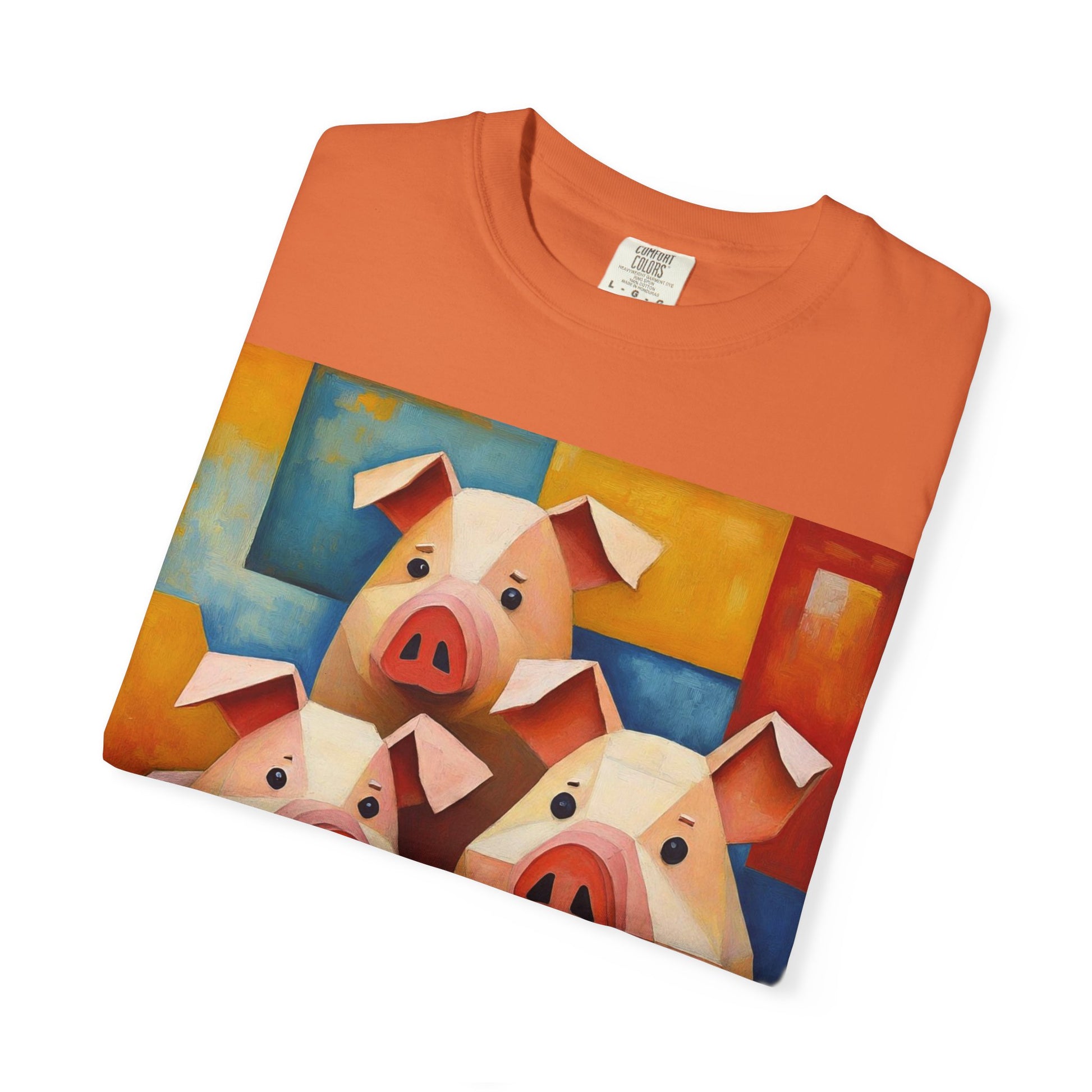 Pig Art T-Shirt, Funny Farm Tee, Animal Lover Gift, Unisex Graphic Tee, Cute Farmhouse Style, Casual Everyday Wear