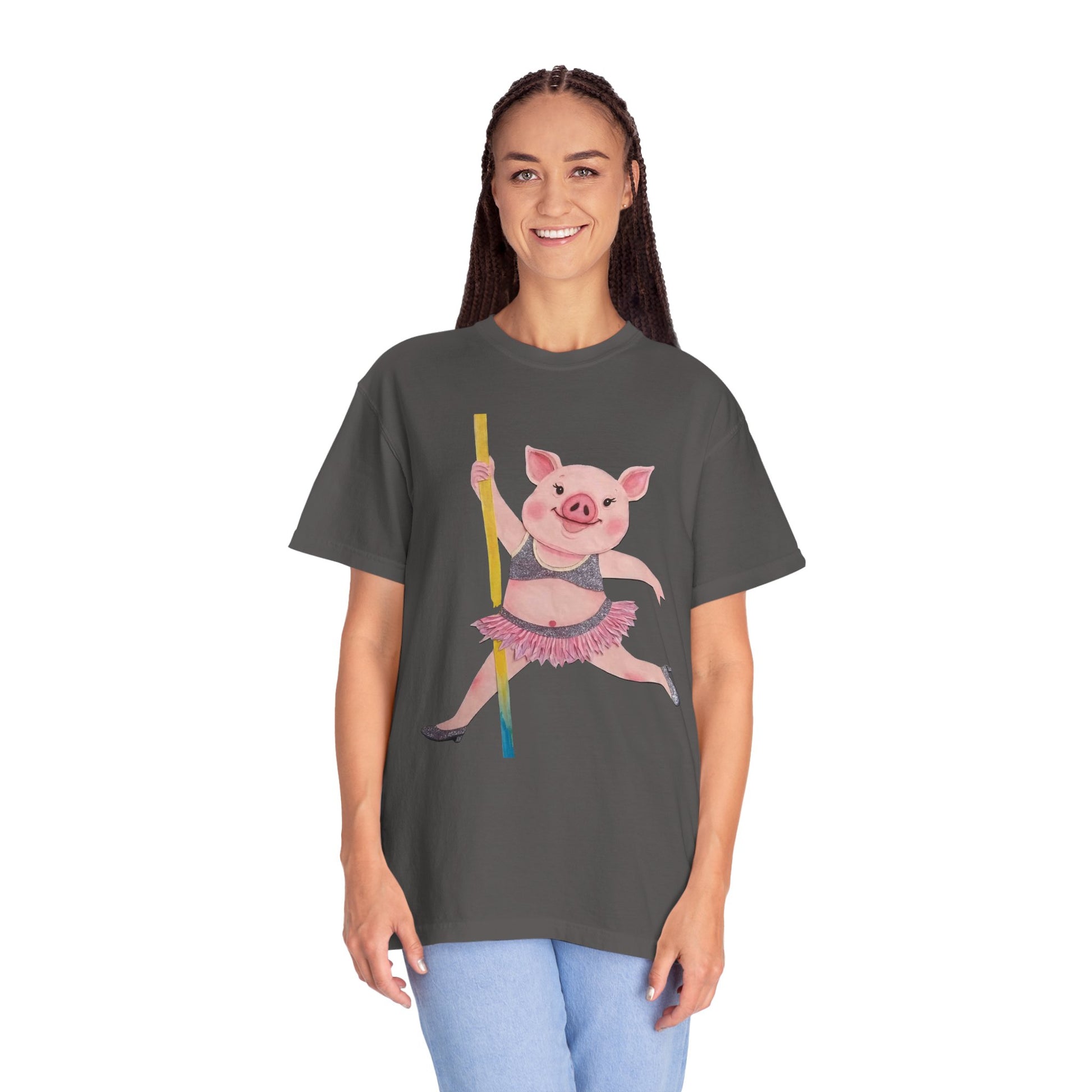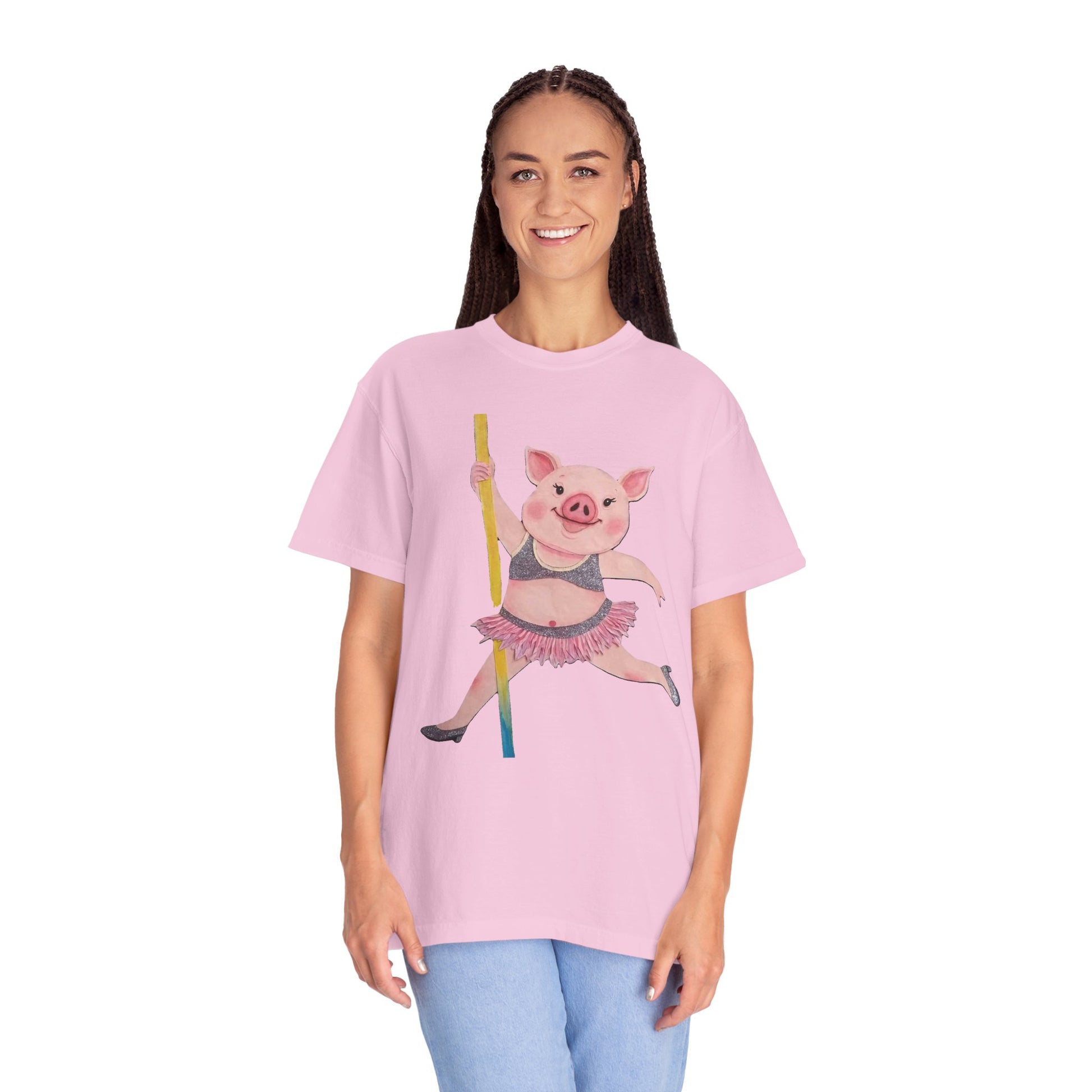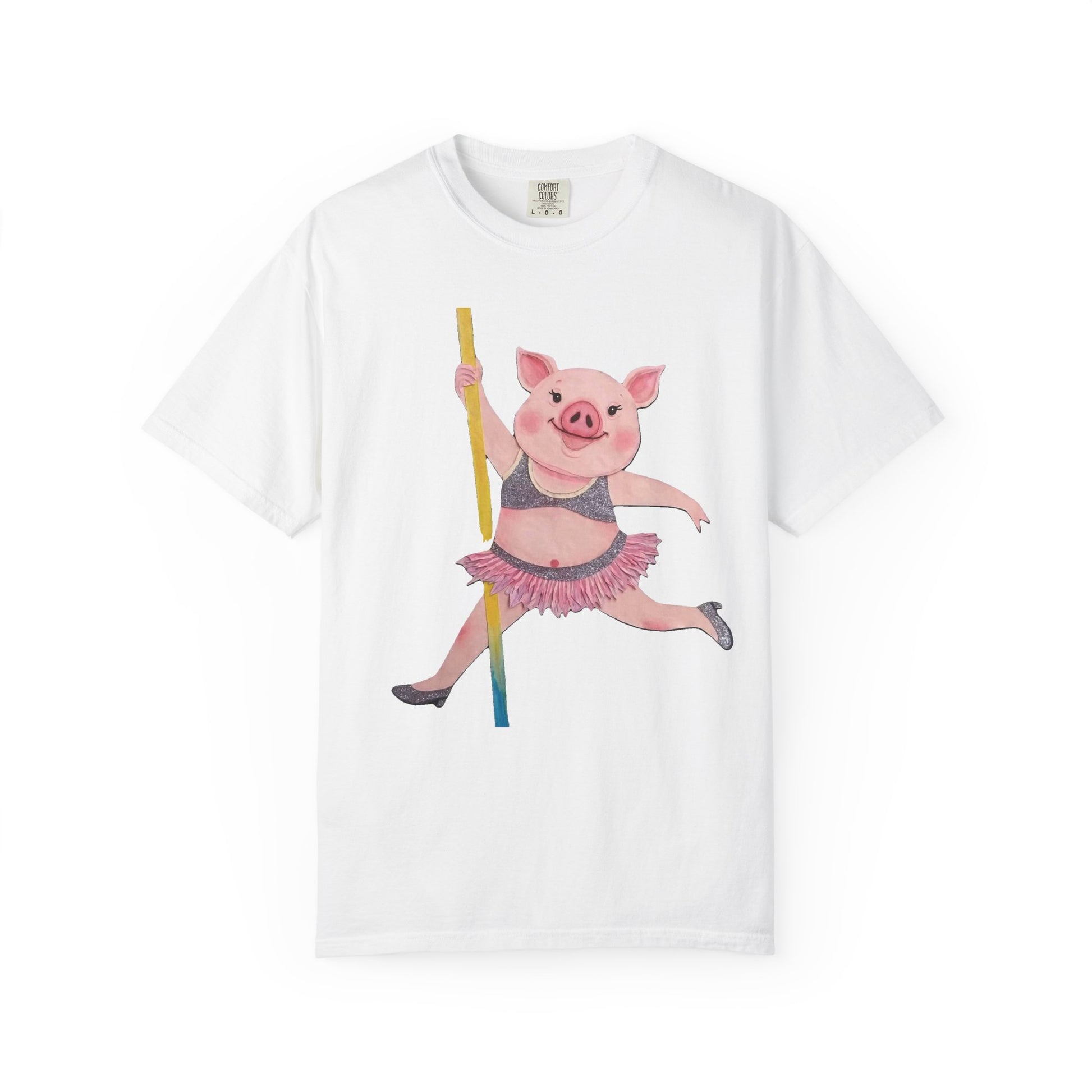'Playful Pig' T-Shirt, Fun Graphic Tee, Animal Lover Gift, Unique Apparel, Funny T-Shirt, Cute Pig Shirt, Pole-Dancers and Pole Dancing Pig.