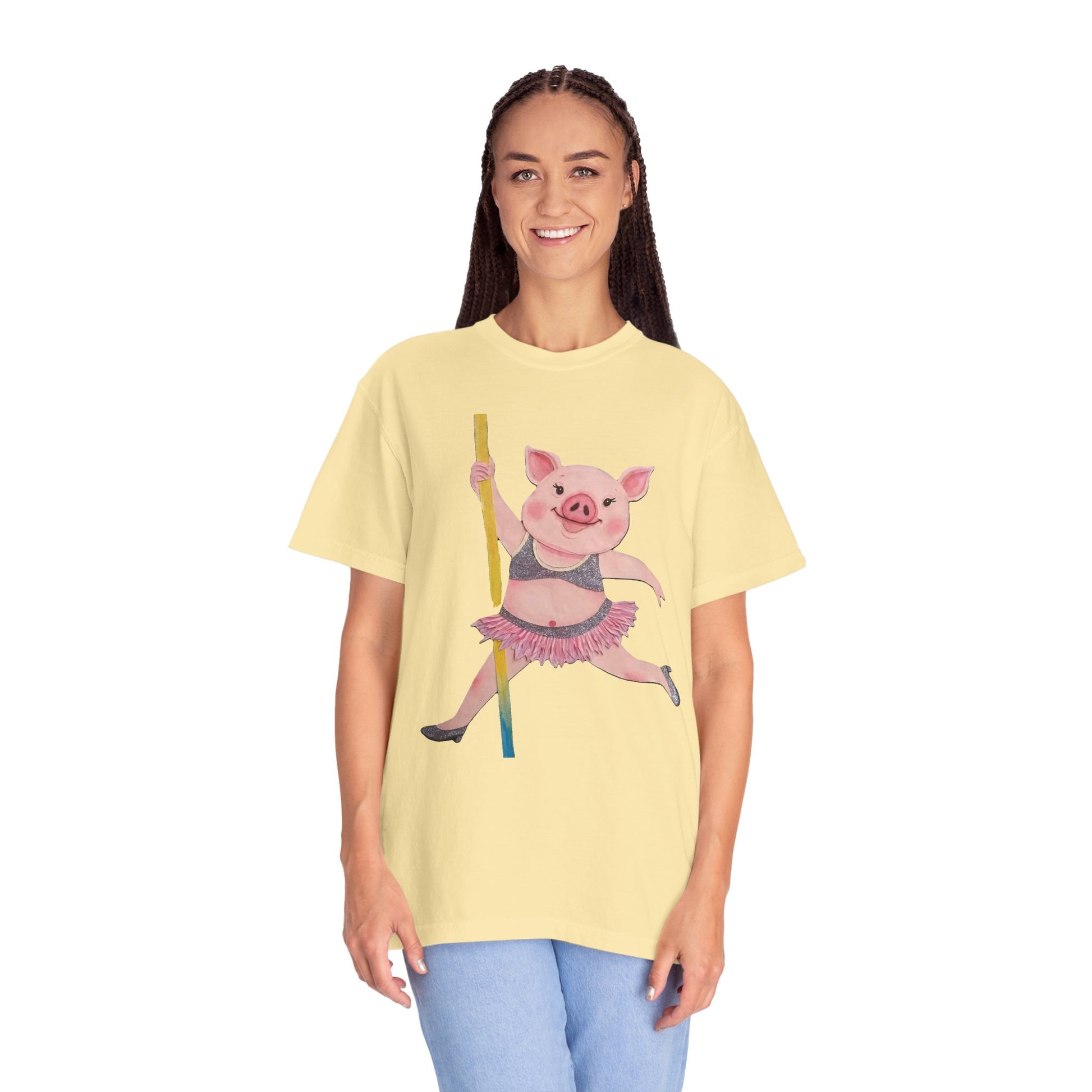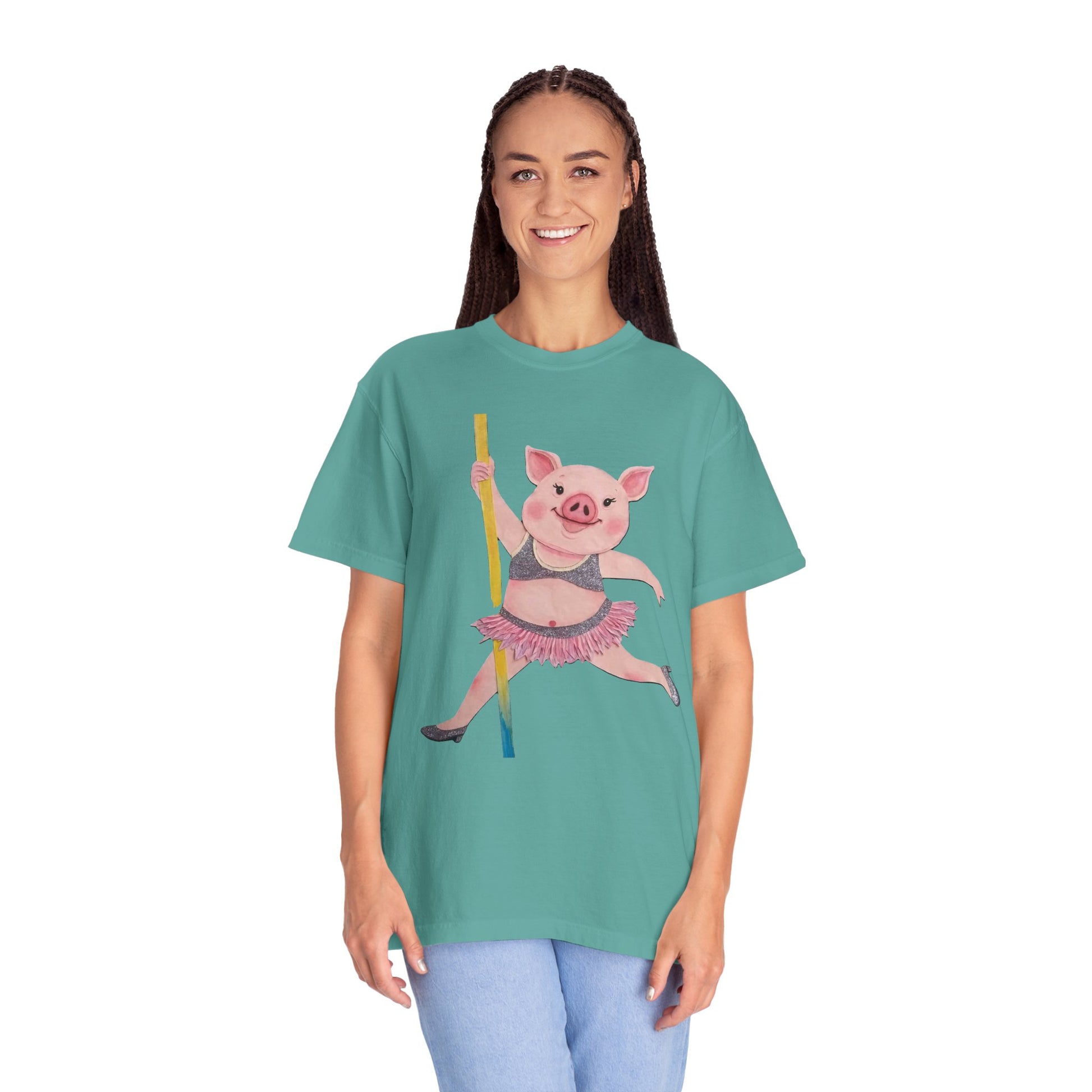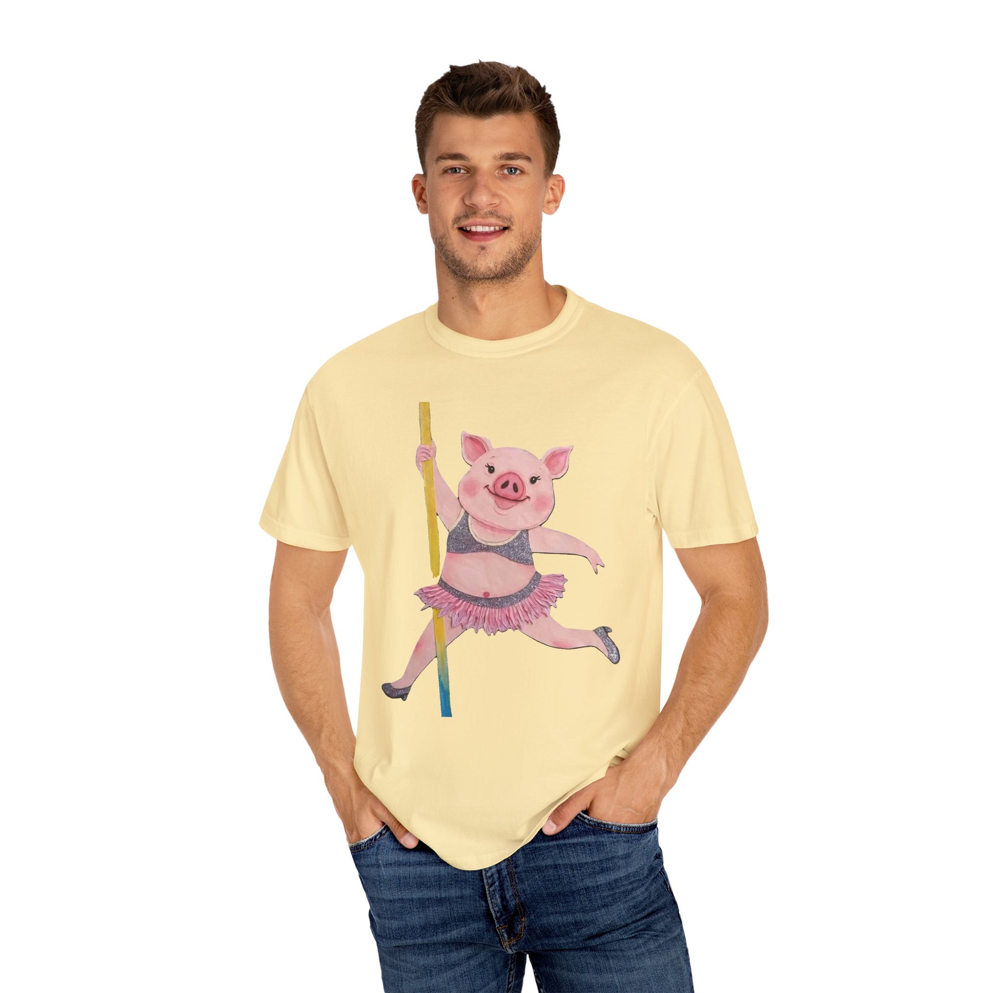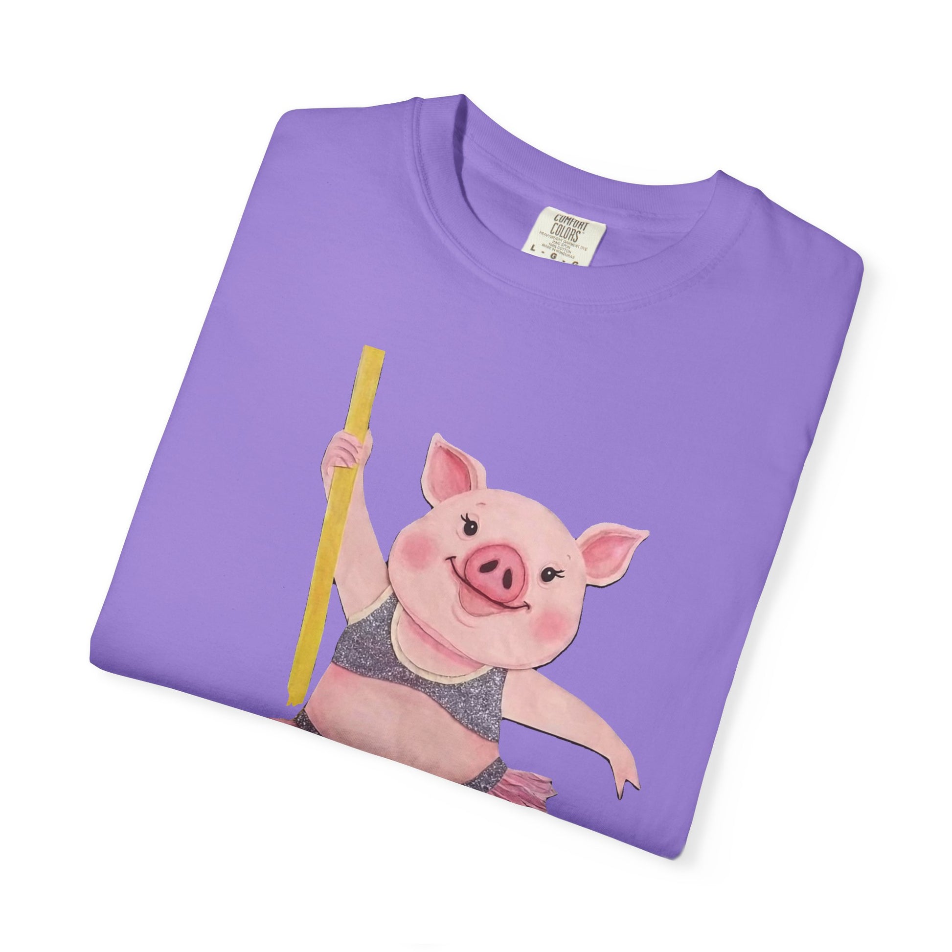 'Playful Pig' T-Shirt, Fun Graphic Tee, Animal Lover Gift, Unique Apparel, Funny T-Shirt, Cute Pig Shirt, Pole-Dancers and Pole Dancing Pig.