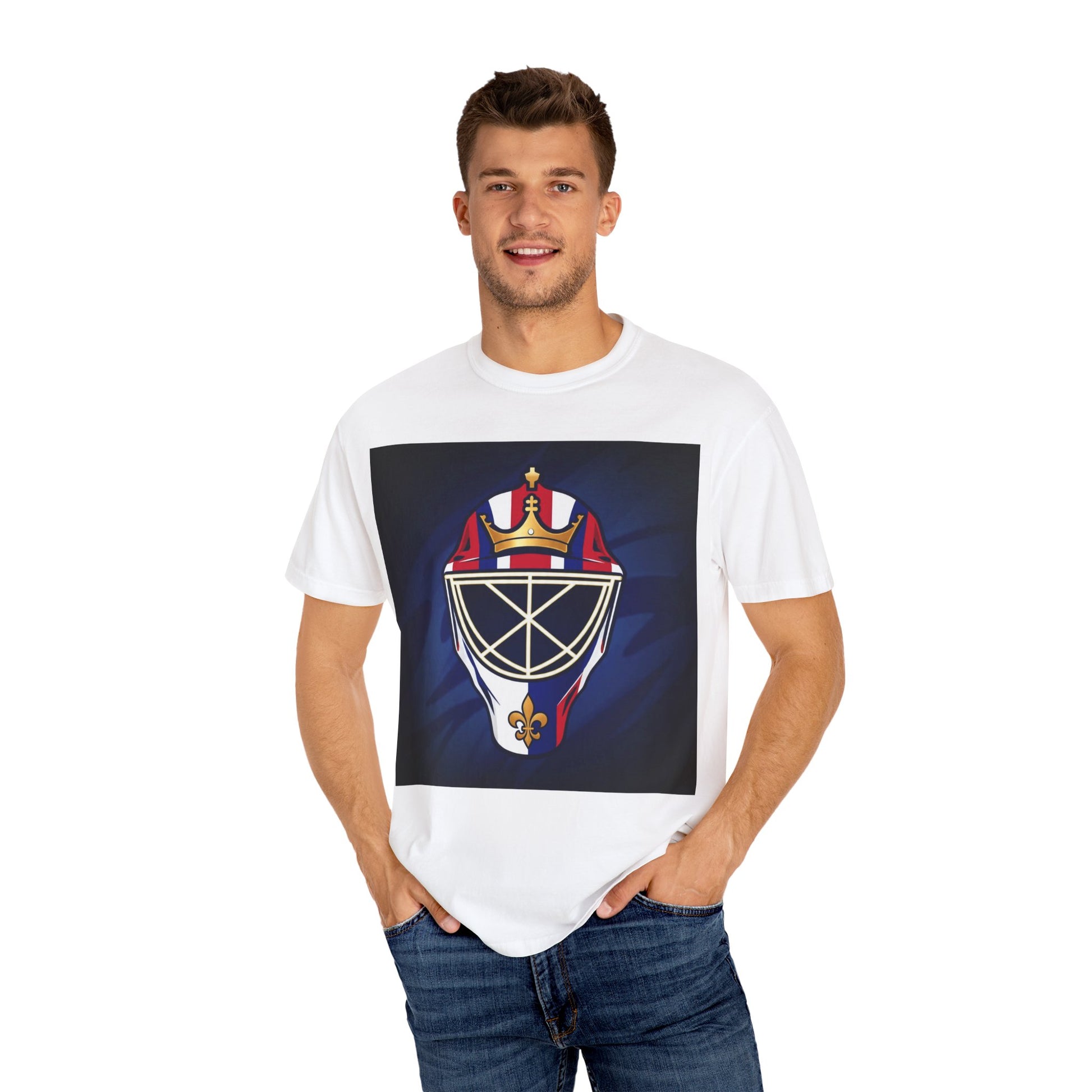 Regal Crown Goalie Mask Graphic T-shirt, Unisex Fashion Tee, Red, White and Blue Casual Wear, Gift for Her/Him, Summer Style, Graphic Apparel, Streetwear