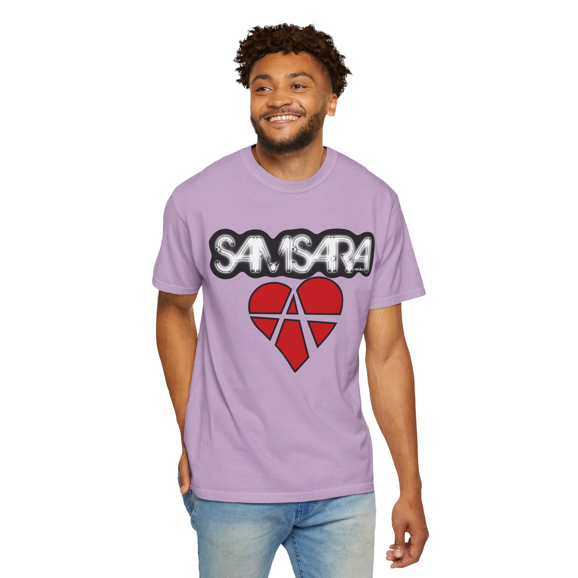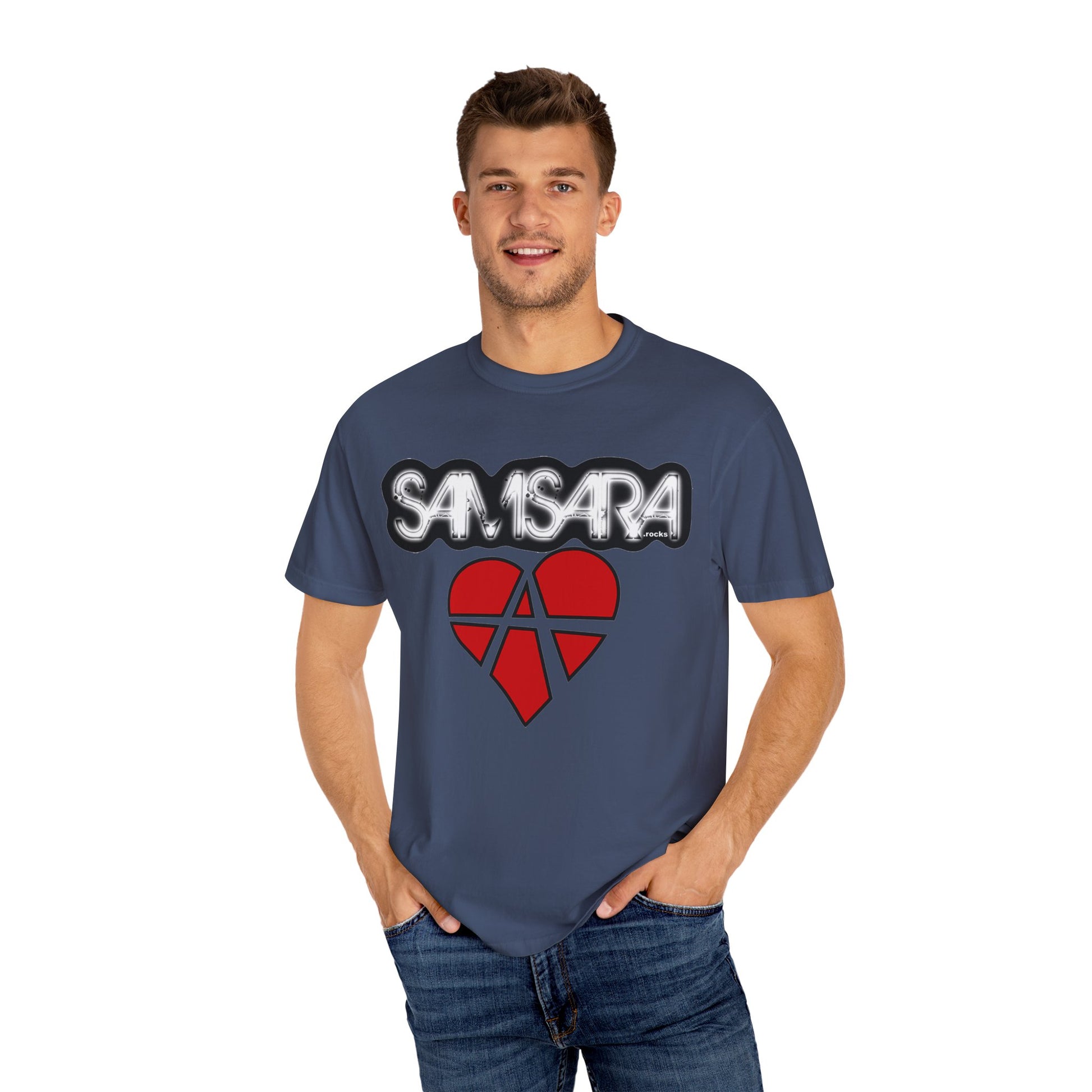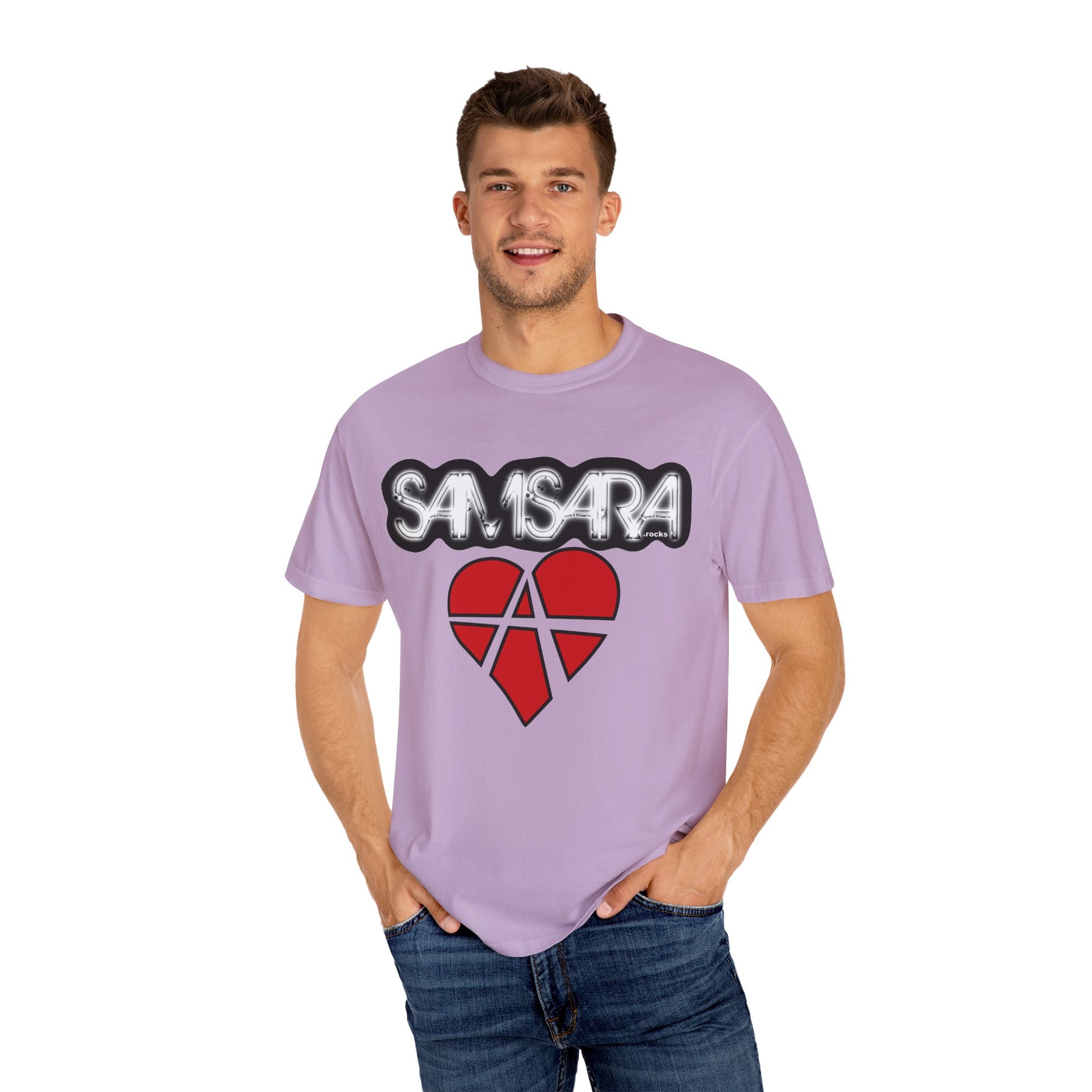 'Samsara Rocks' Logo, Love and Anarchy Graphic Tee | Unisex Garment-Dyed T-Shirt, Casual Fashion, Heart Design, Streetwear, Gift for Him/Her