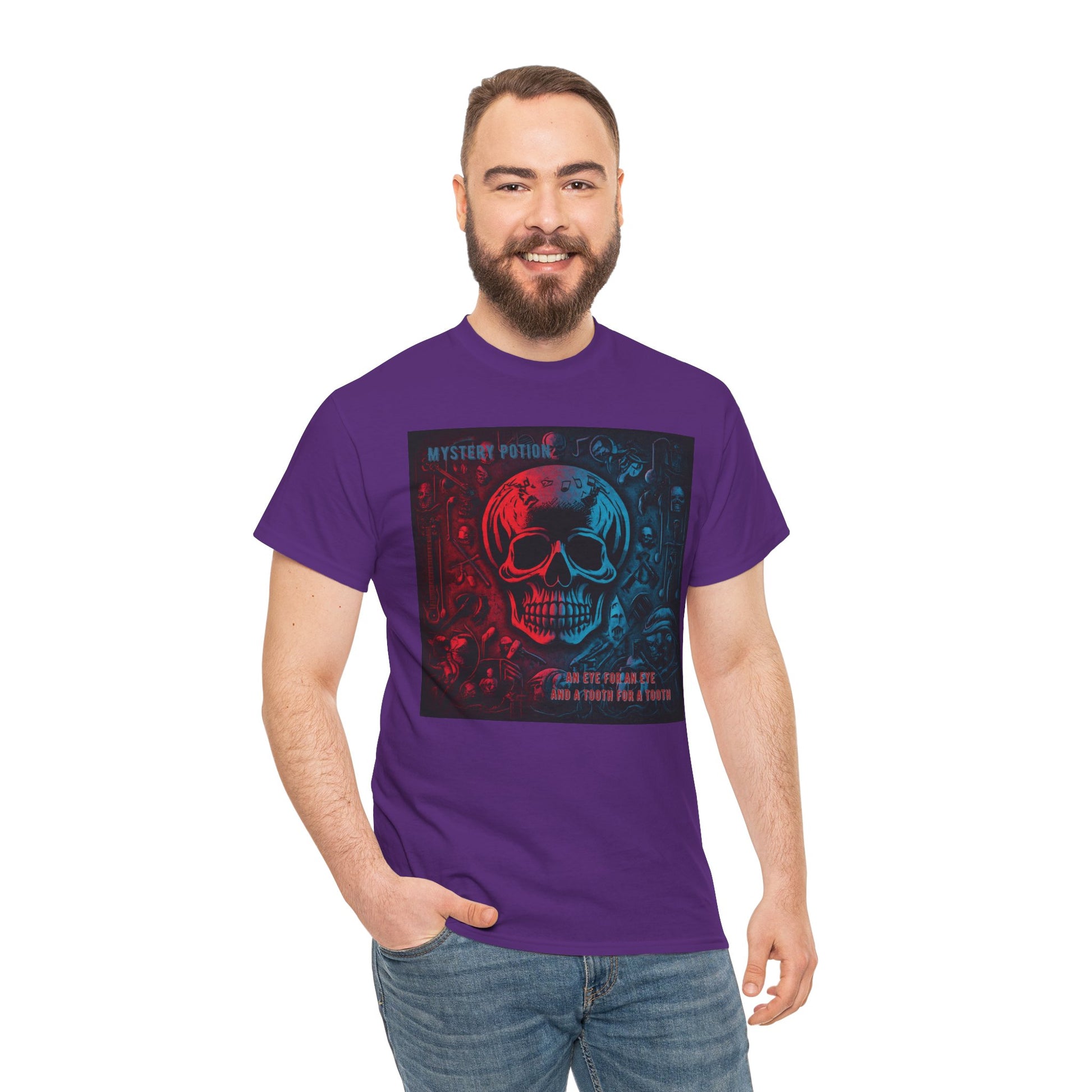 An Eye For An Eye And A Tooth For A Tooth by Mystery Potion, Stylish Skull Graphic Tee - Perfect for Halloween, Casual Wear, Music Festivals, Unique Gift, Unisex Heavy Cotton Shirt