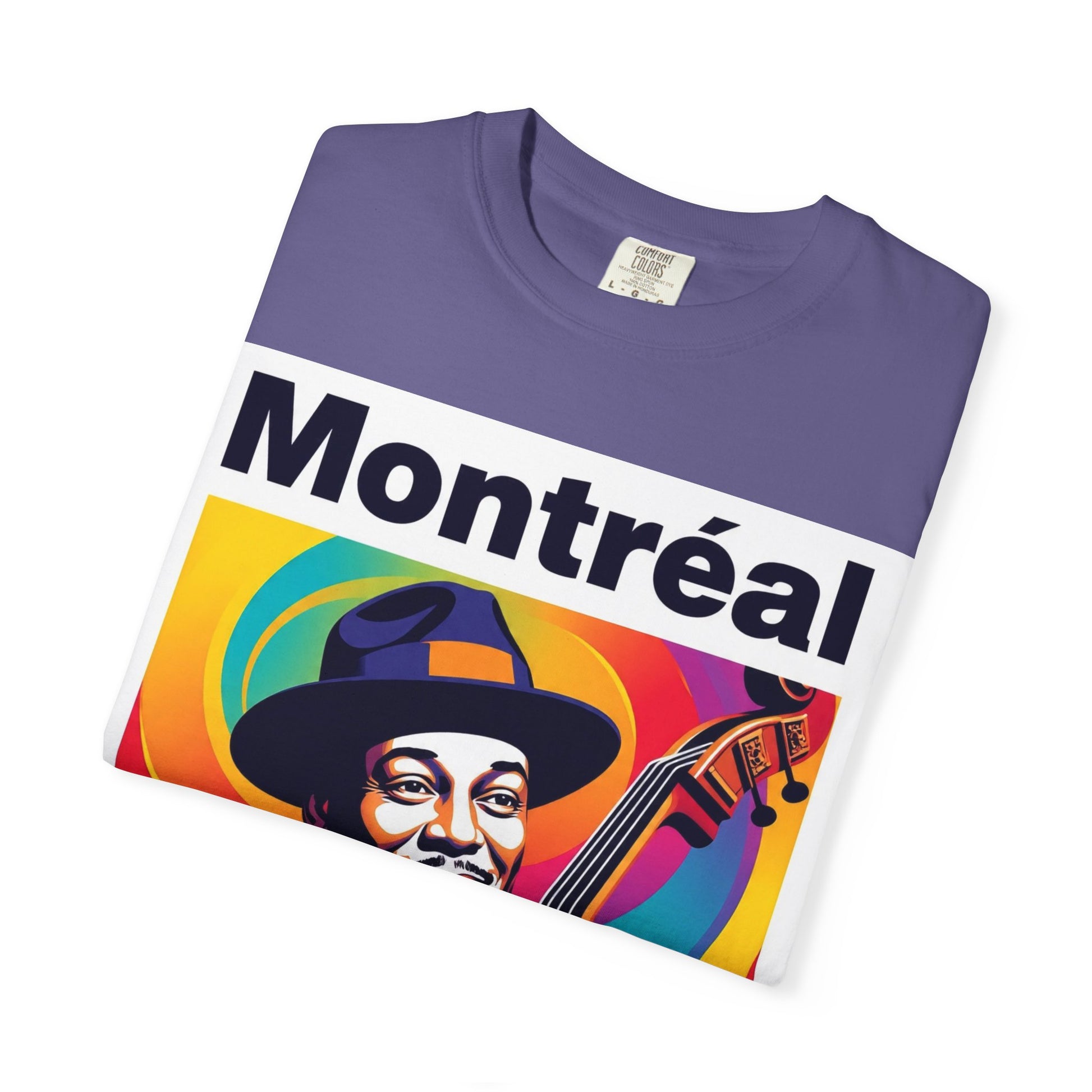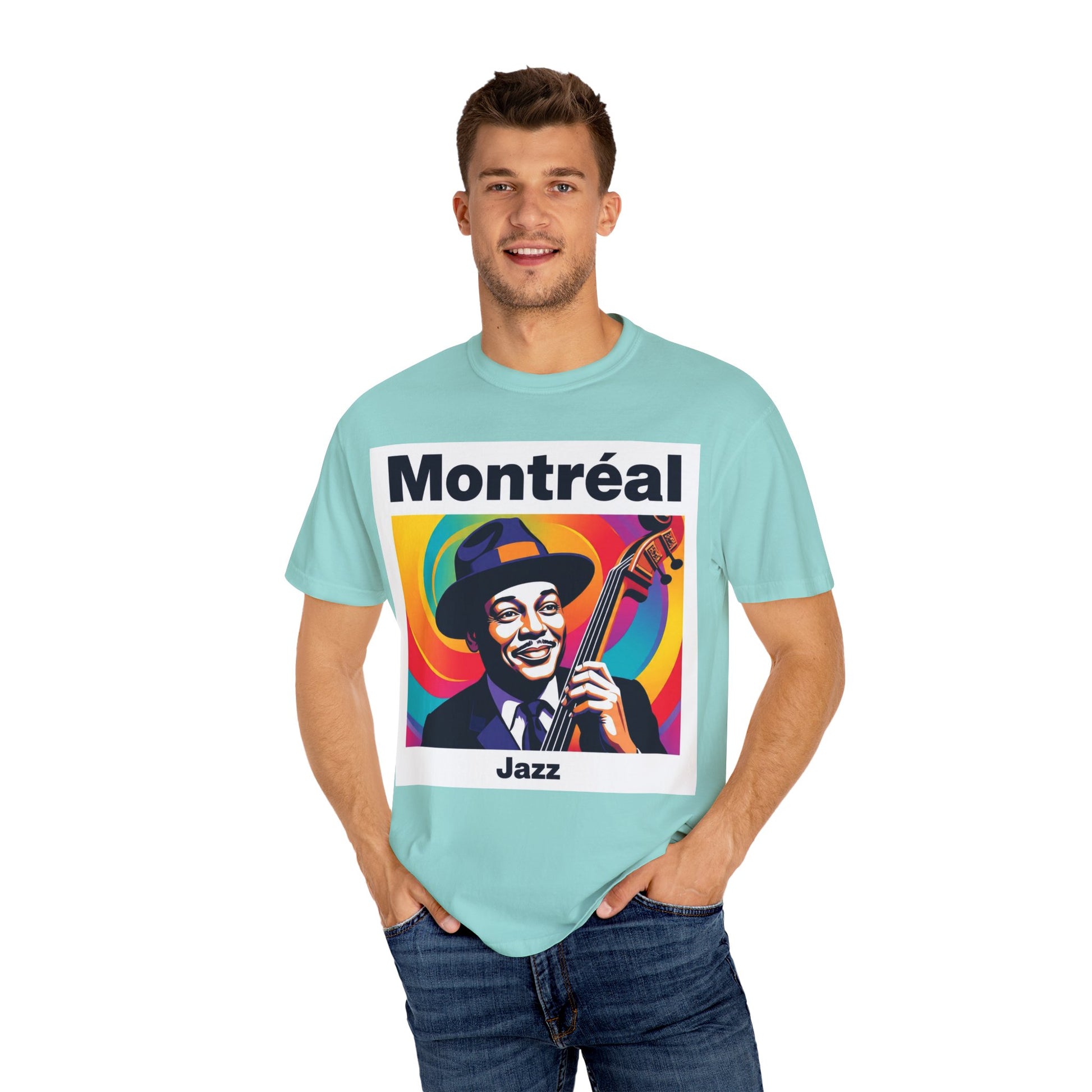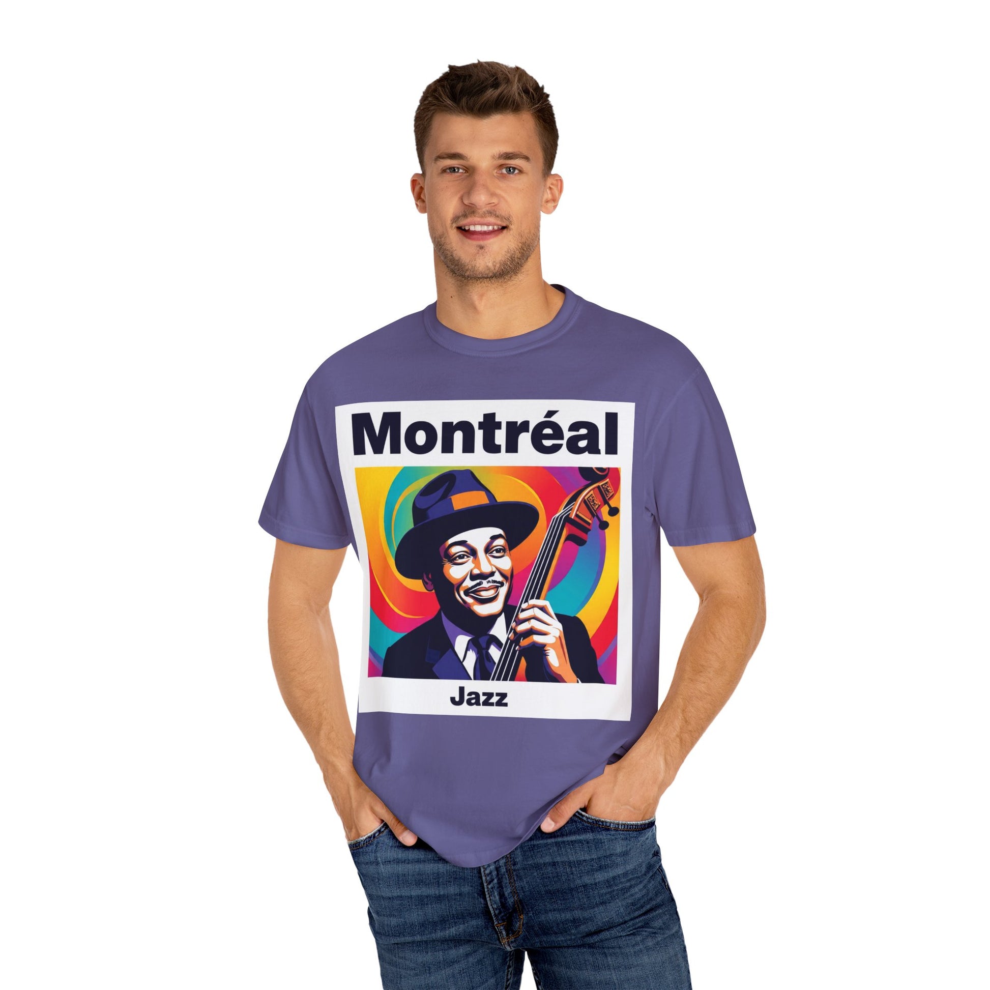 Vibrant Jazz T-Shirt with Montréal Design | Unisex Garment-Dyed Tee for Music Lovers, Concerts, Festivals, Gift Idea, Casual Wear