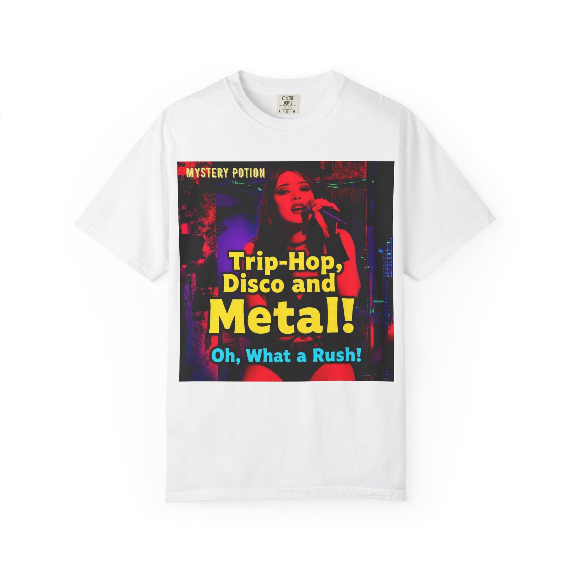 Trip Hop, Disco and Metal! Oh, What a Rush Vibrant Music-Themed Unisex T-shirt | Perfect Gift for Music Lovers, Concert Attendees, Band Merch, Festival Apparel, and Casual Wear