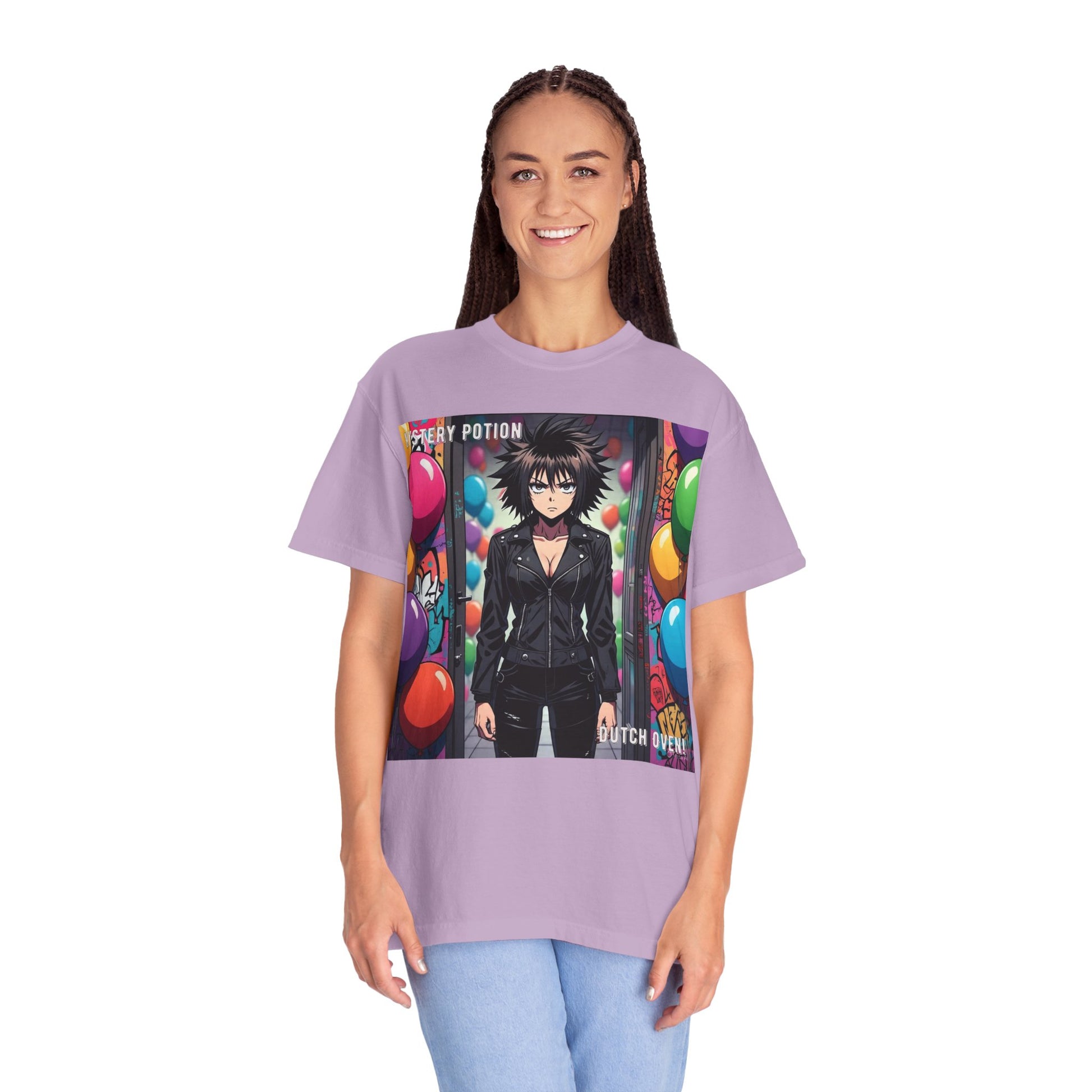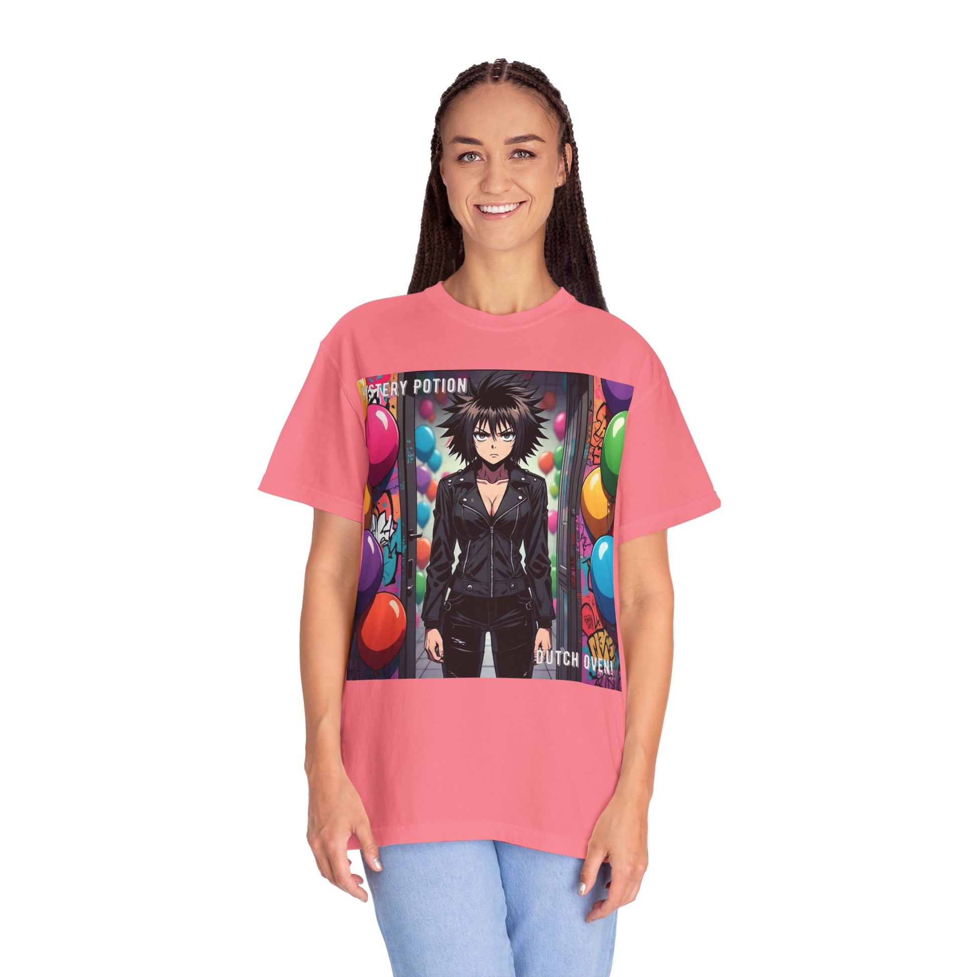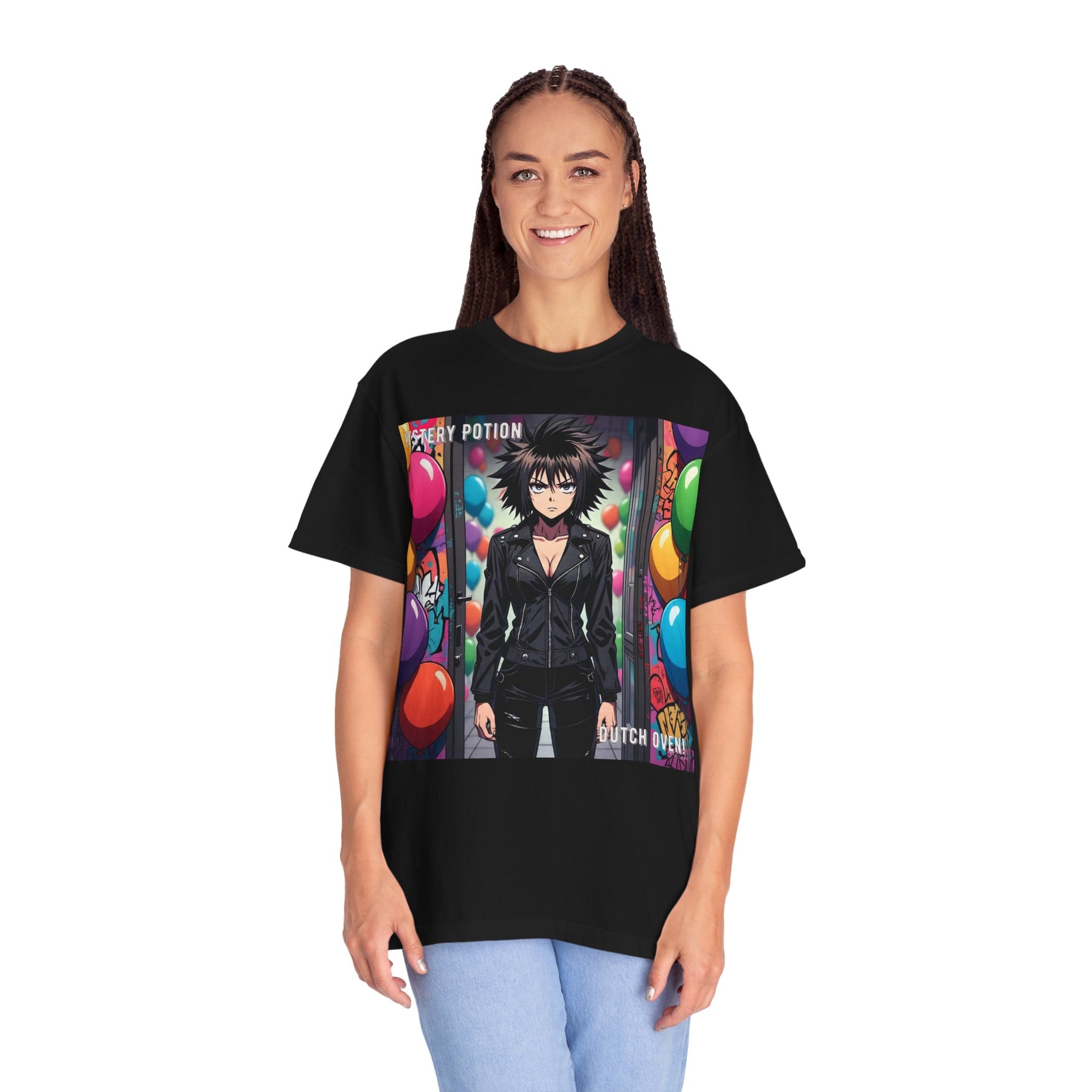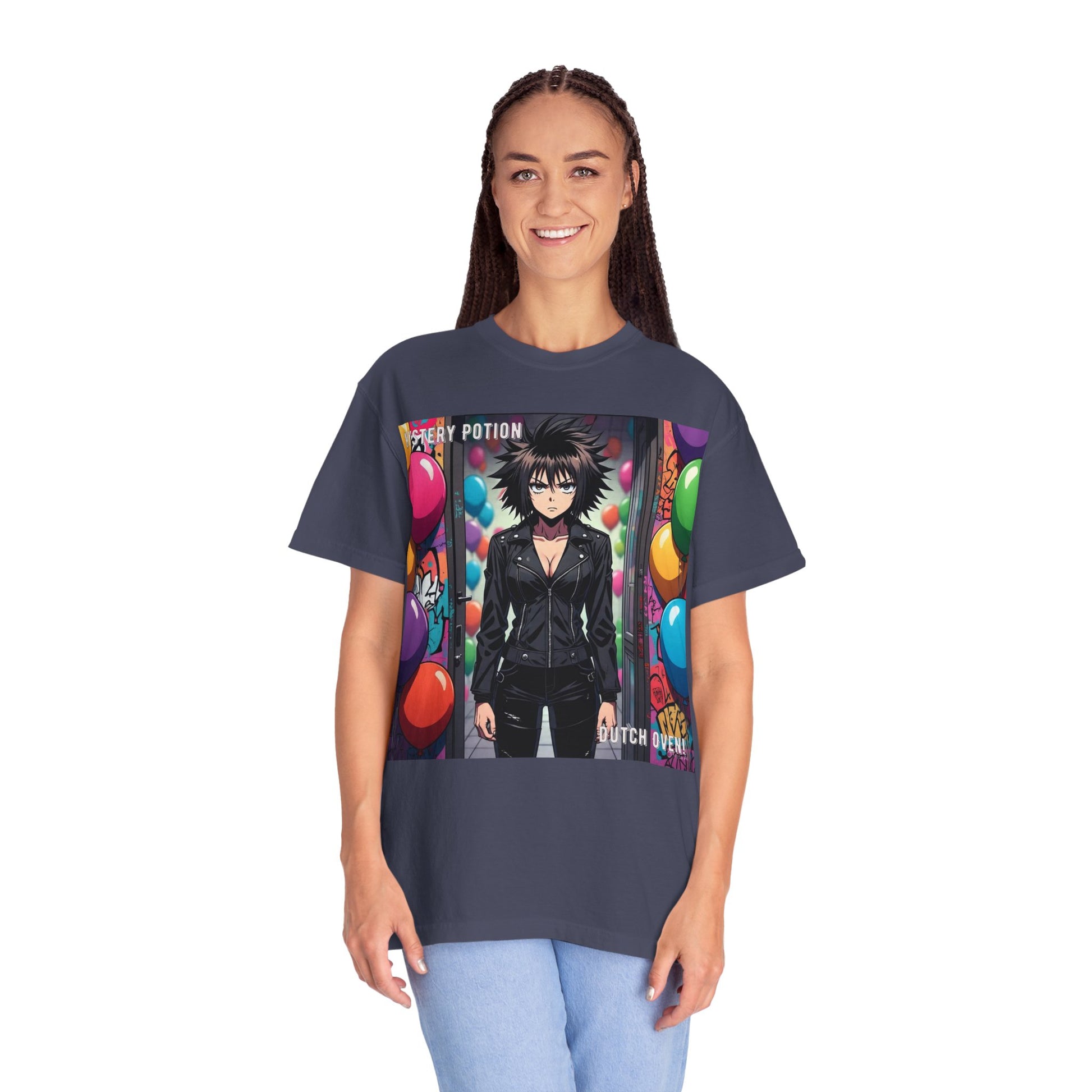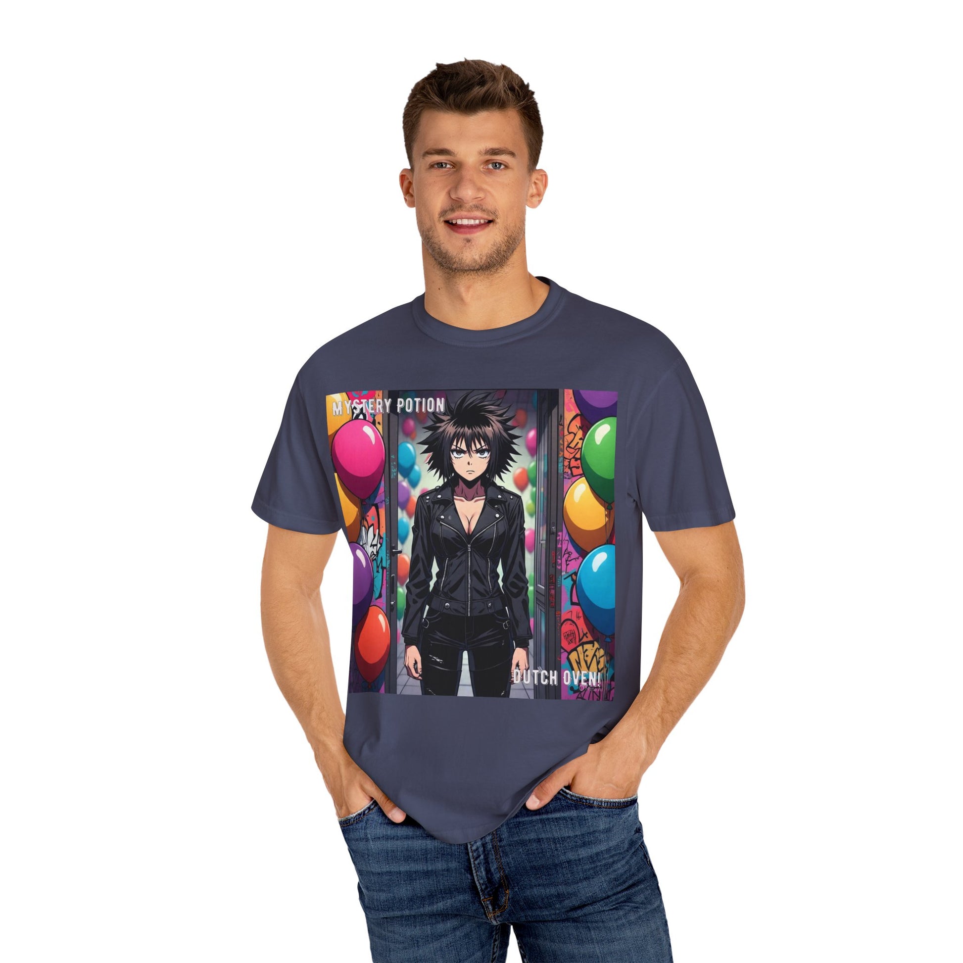 Mystery Potion's 'Dutch Oven', Whimsical Grabber Style Anime Graphic T-shirt featuring Bold Art, Anime Style Tee, Unisex Casual Wear, Gift for Friends, Trendy Statement Shirt