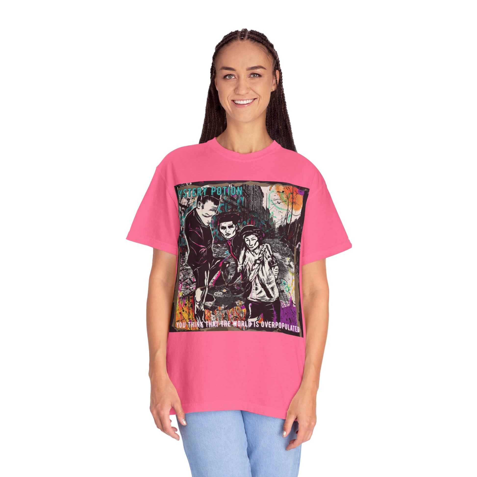 'You Think The World Is Overpopulated' by Mystery Potion, Street Art Unisex T-Shirt - Alternative Fashion, Graphic Tee for Music Lovers, Gifting, Urban Style, Everyday Wear